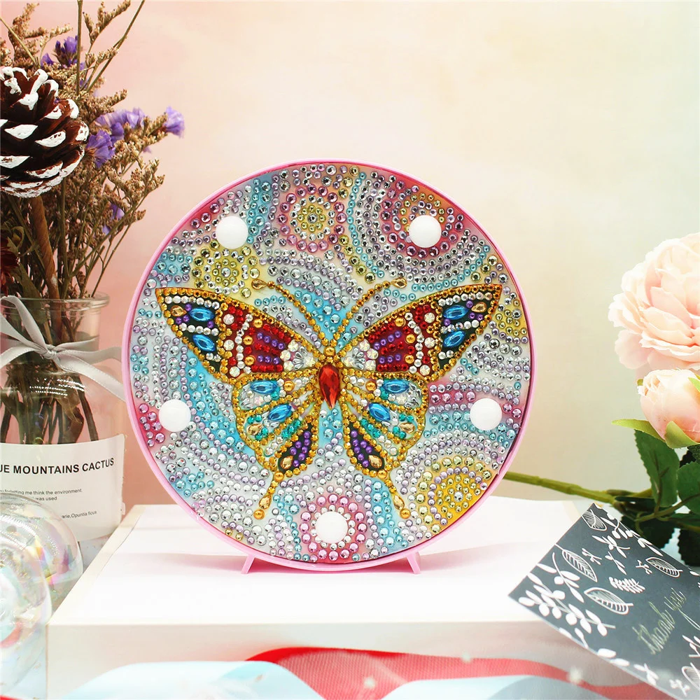 HUACAN Алмазная Вышивка Бабочка алмазная живопись лампа Светодиодная Алмазная мозаика ландшафтное украшение