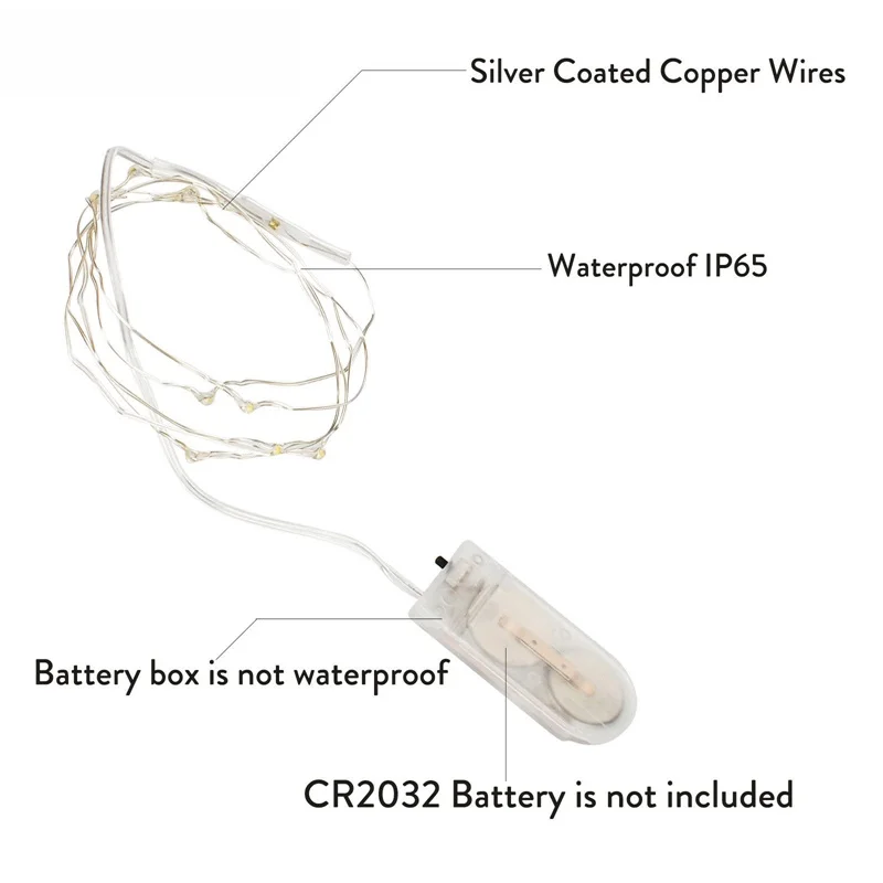 Гирлянсветильник из 10, 20, 30 светодиодов, с медной проволокой, для праздника, рождественской елки, свадьбы, украшения, питание от батареи CR2302