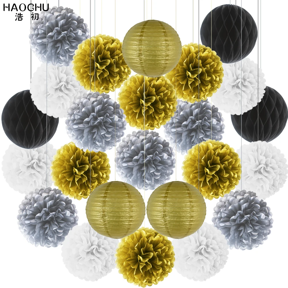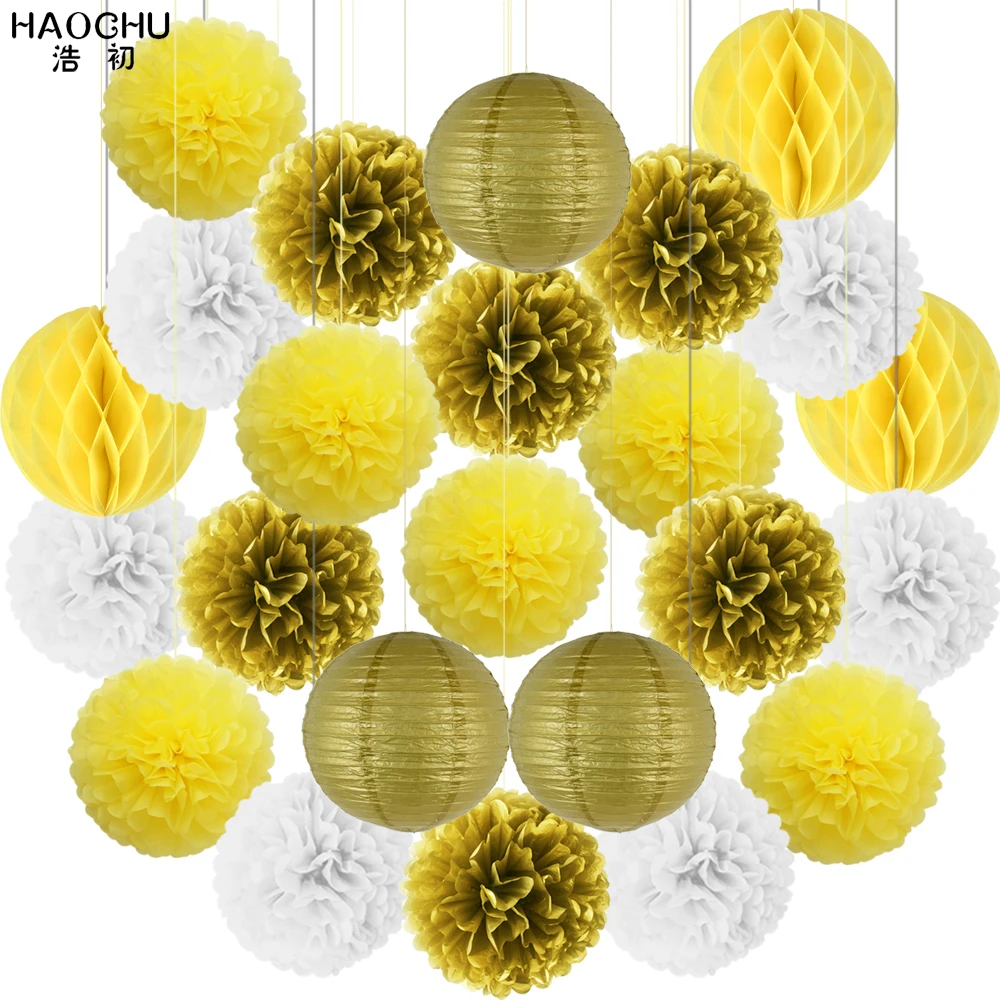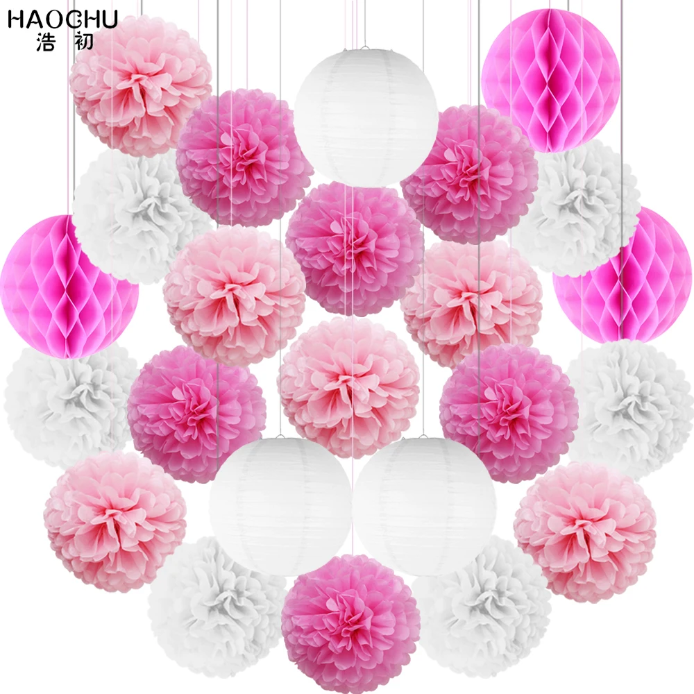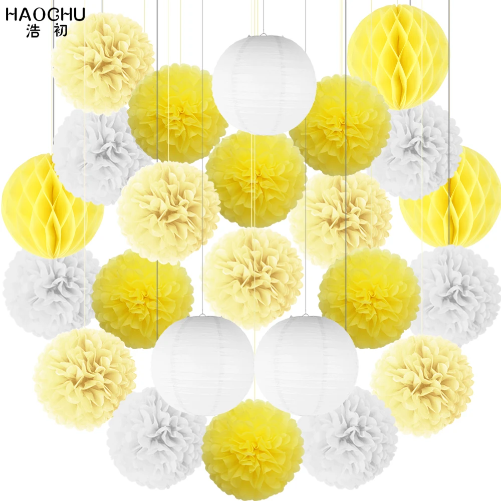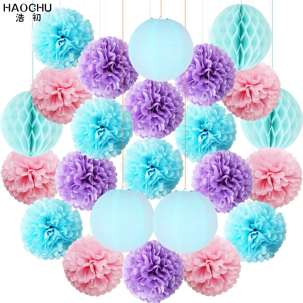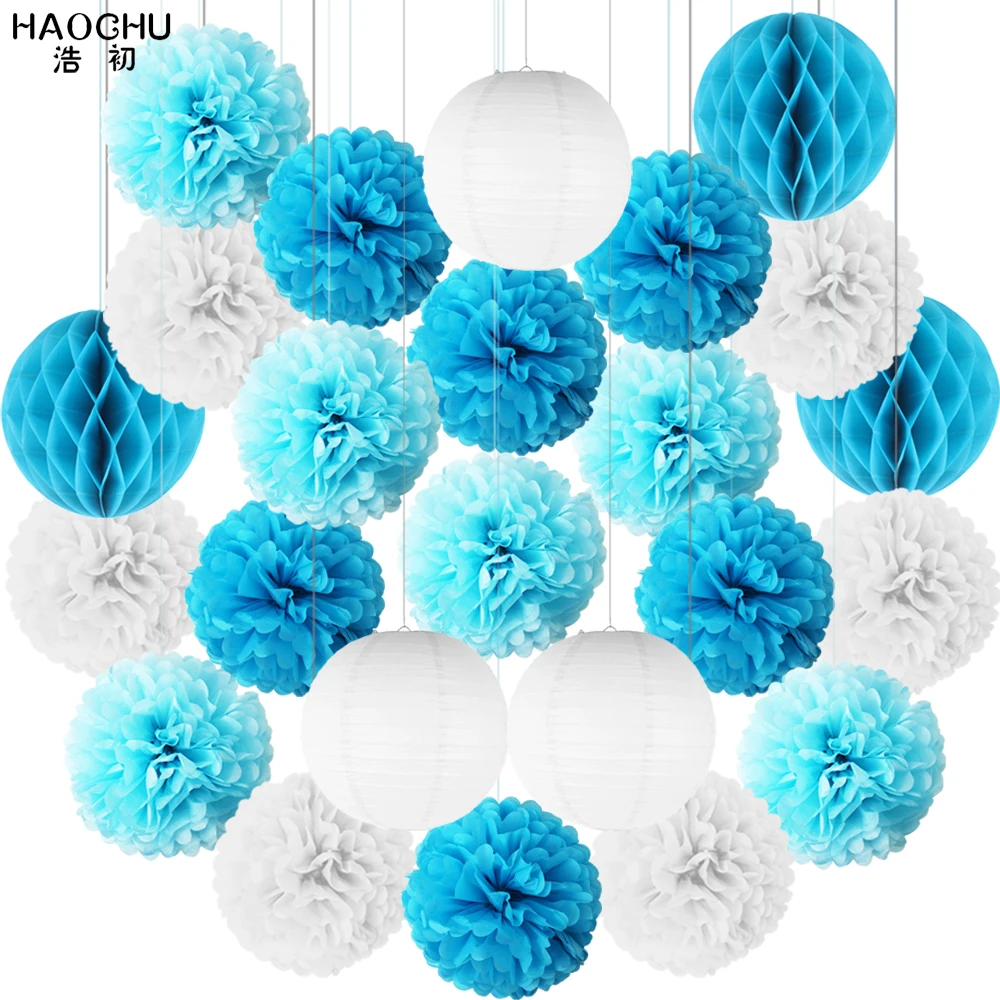 24 шт.набор, бумажные тканевые помпоны в виде фонариков, белого и синего вечерние тов, свадебные украшения для дня рождения