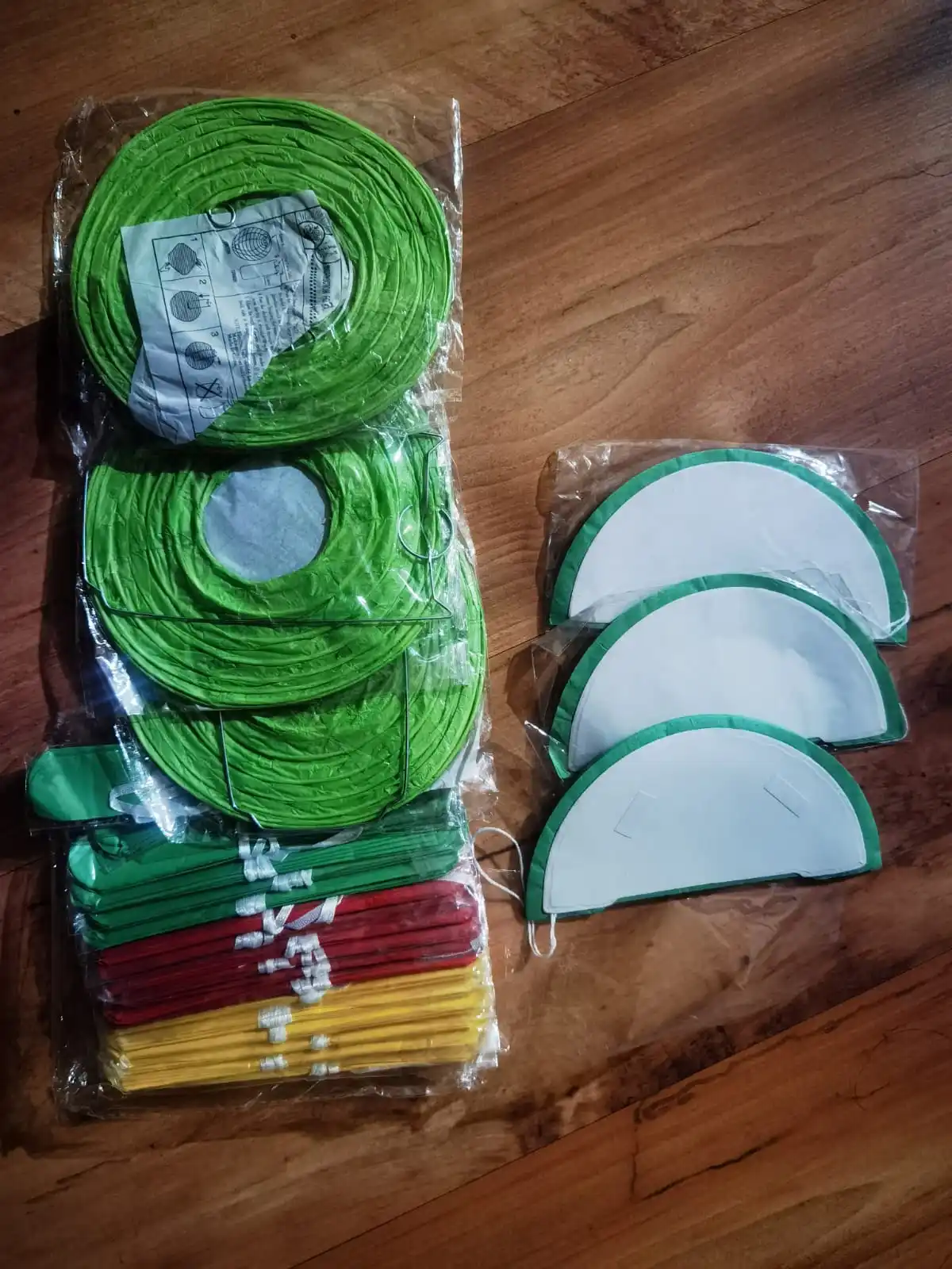 6 фонарей хорошие. Остальные- бумага, которую нужно расправлять самому. Форма шара не получается. не рекомендую.
