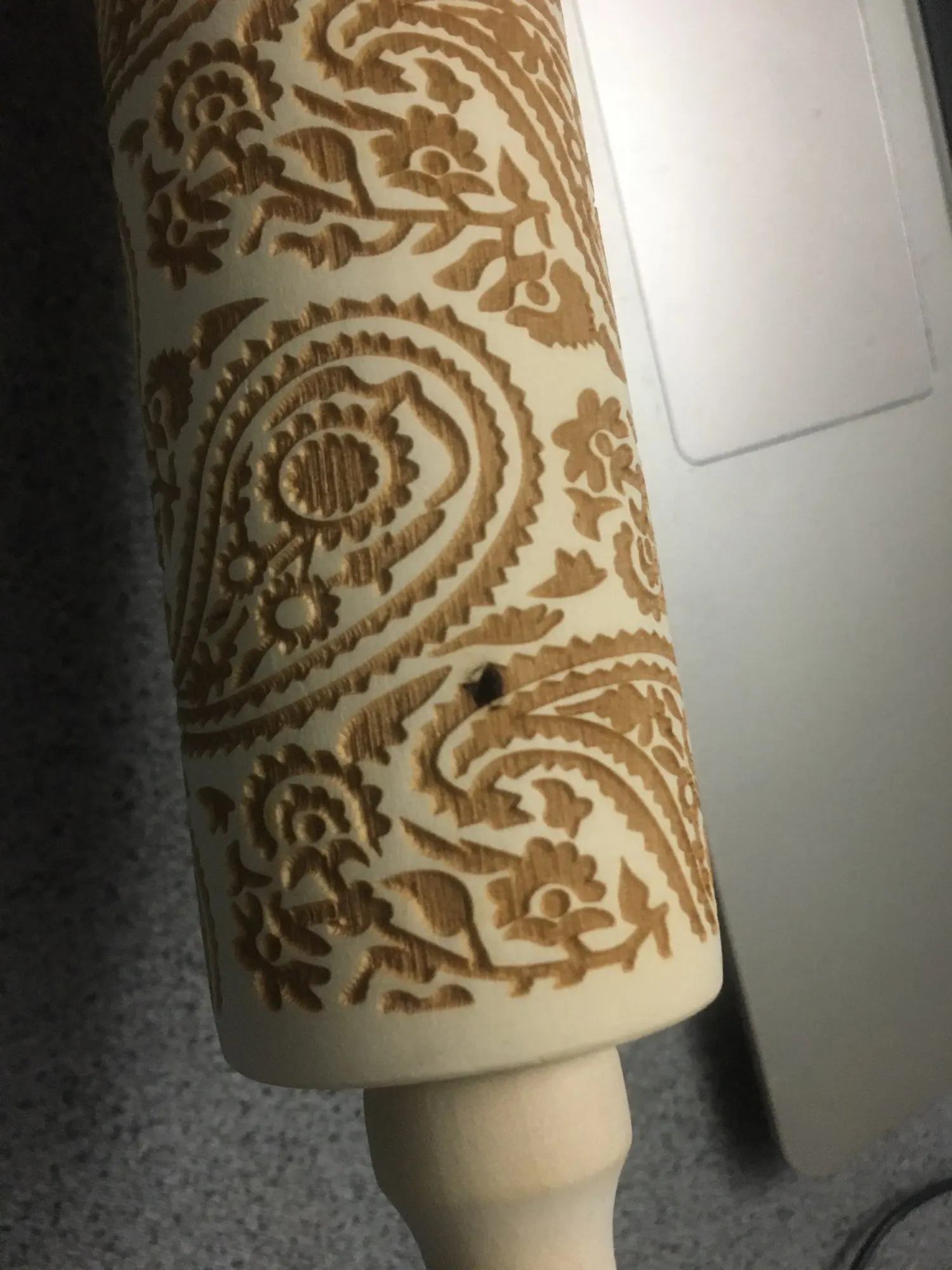 Я чрезвычайно разочарован этим: резьба настолько тонкая и настолько Поверхностная, что принт кота совсем не показывает на тесте; Он просто дает ей немного неровную поверхность, поэтому нет необходимости использовать его, мой старый хороший ролик может сделать эту работу! Я с ним был так же хорош, как и с другим (рисунок B), я заказал одновременно!
