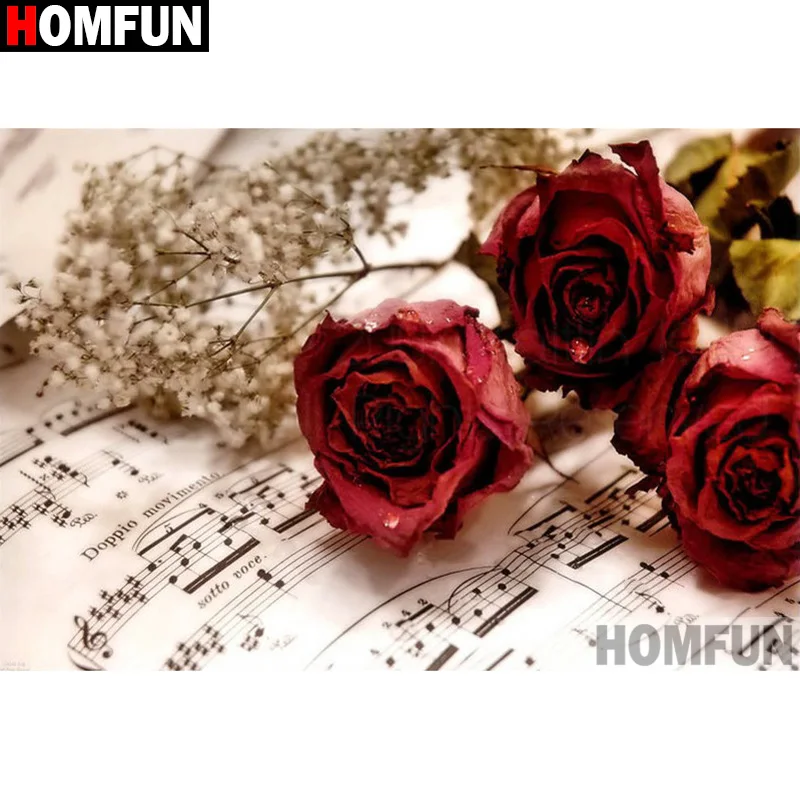 Алмазная 5D Вышивка HOMFUN сделай сам, полноразмерная картина цветочное пианино, квадратнаякруглая, декоративное искусство стразы, A27203