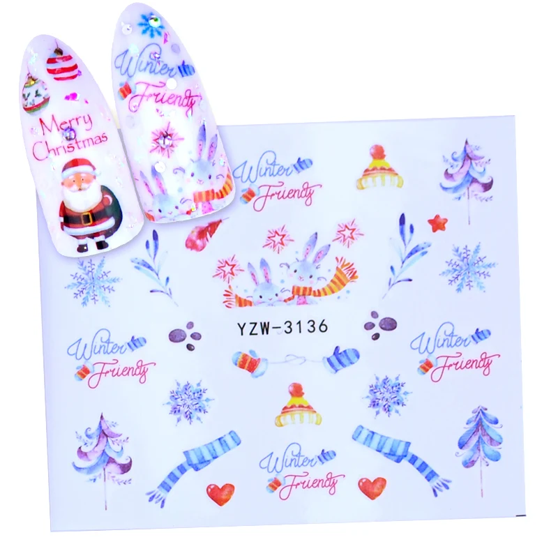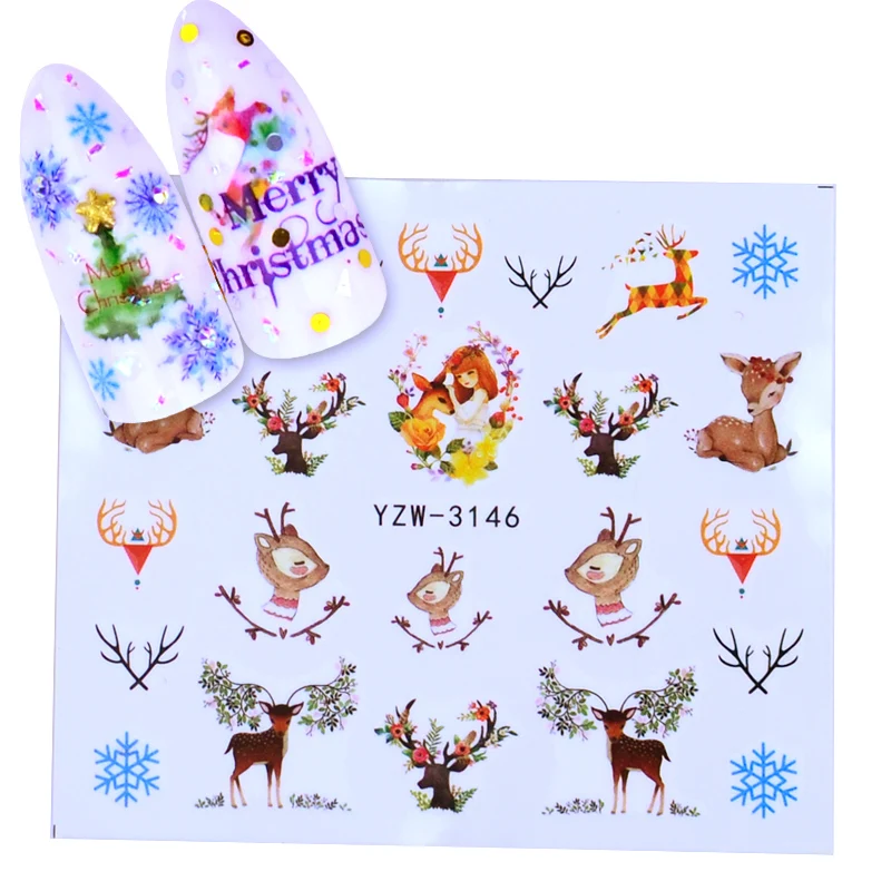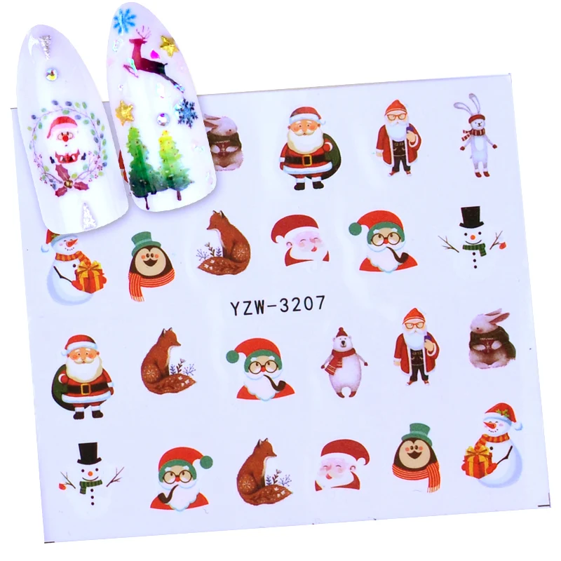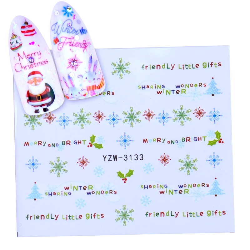 Переводные наклейки для ногтей на Рождество, Новый Год, 1 шт.