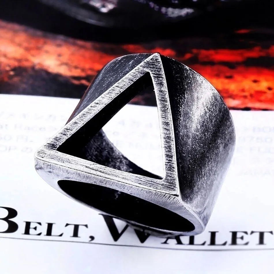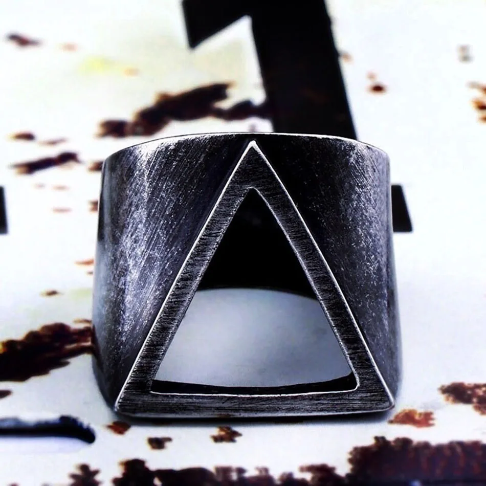 Кольцо Liumo в винтажном стиле, в стиле панк, черное, блестящее, треугольное, мужское, байкерское, из стального сплава, Lr1058