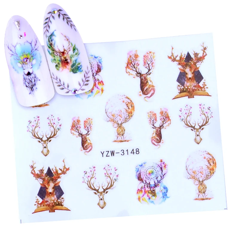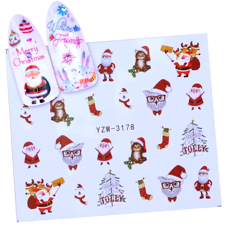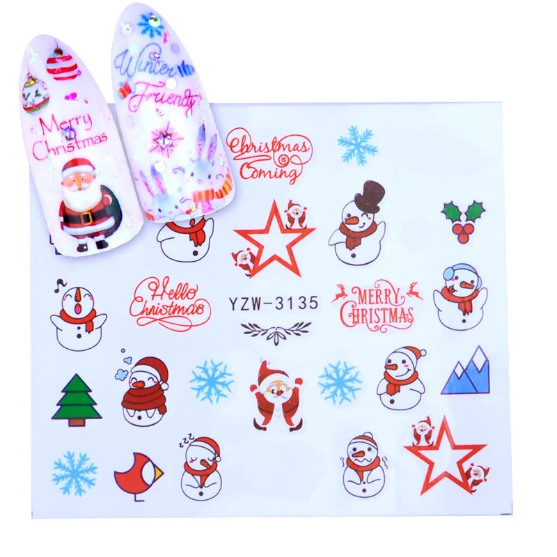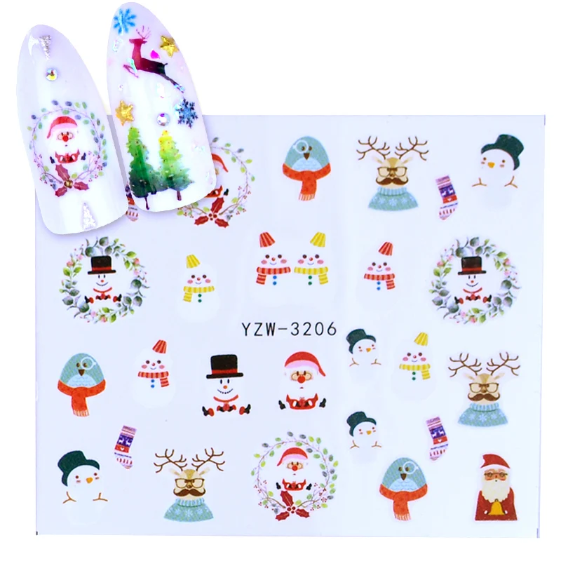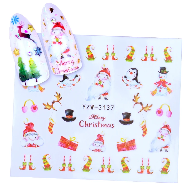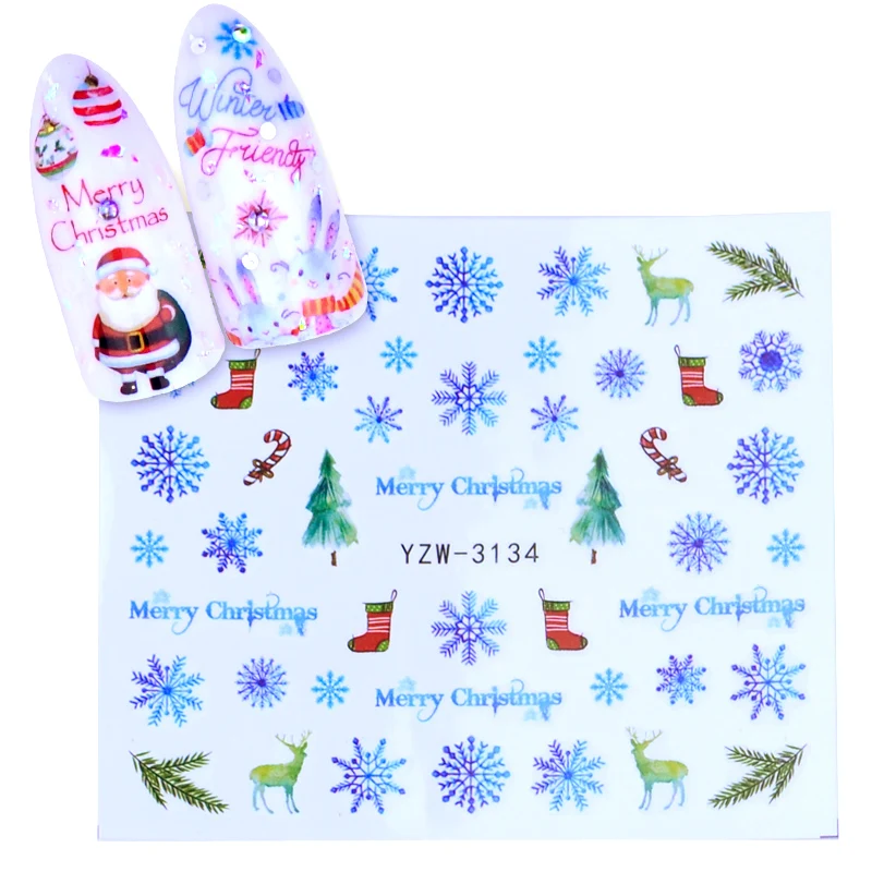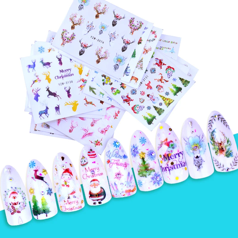 Наклейки для ногтей 1 лист Рождественская наклейка, снег, цветок, олень, красота, DIY водяной знак, дизайн ногтей, Рождество, Новый Год, Декор