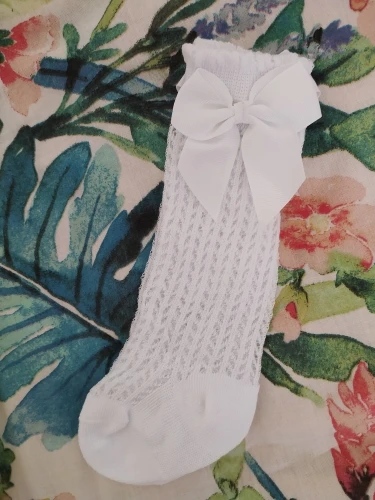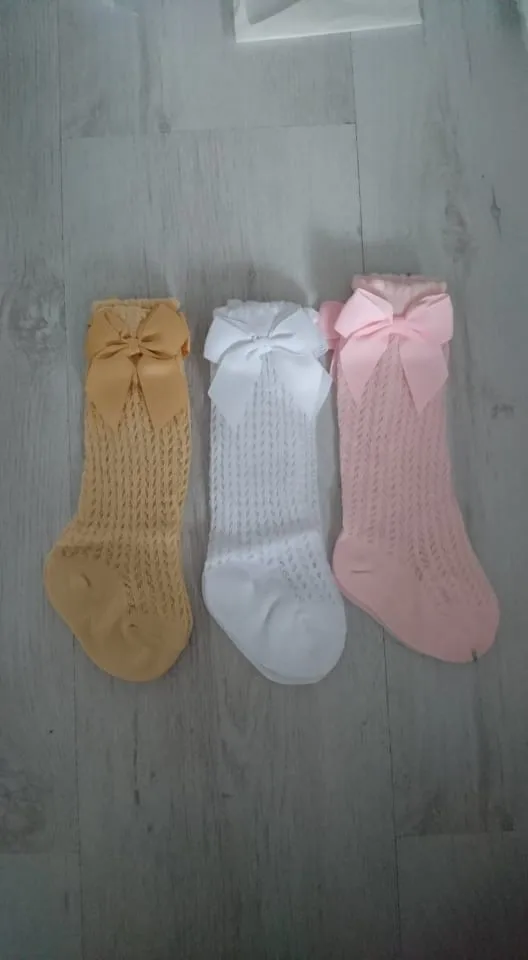 Носки для маленьких девочек, хлопковые, с кружевом, до колена, в испанском стиле, с бантом, для детей 0-3 лет, 34