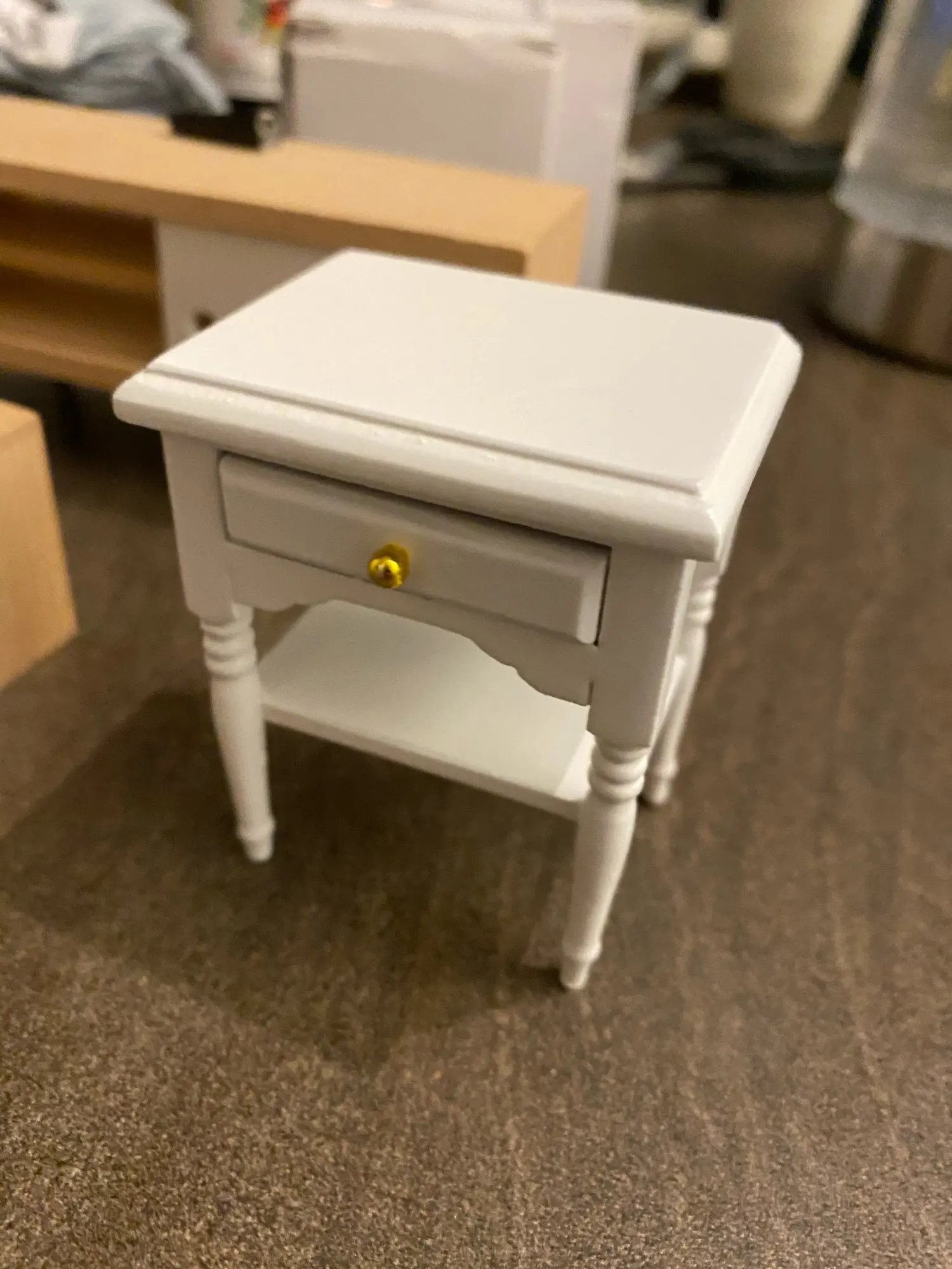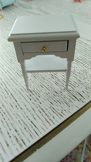 Нравится эта прикроватная миниатюрная мебель в белом цвете. Он имеет стиль дачного типа в 1/12 масштабе, и полка может быть открыта и закрыта. Он полностью собран и отправляется в маленькой упаковке в маленькой картонной коробке. Этот продукт именно то, что я ожидал от него, также хорошая цена для детального производства. Я могу порекомендовать этот товар.
