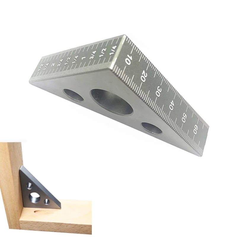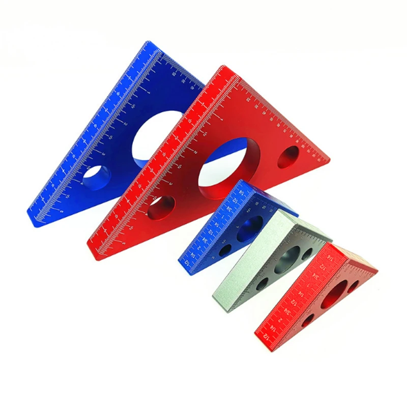 Угловая линейка из алюминиевого сплава, 45 градусов, дюйм, метрическая, треугольная, плотницкая мастерская, Деревообрабатывающие инструменты