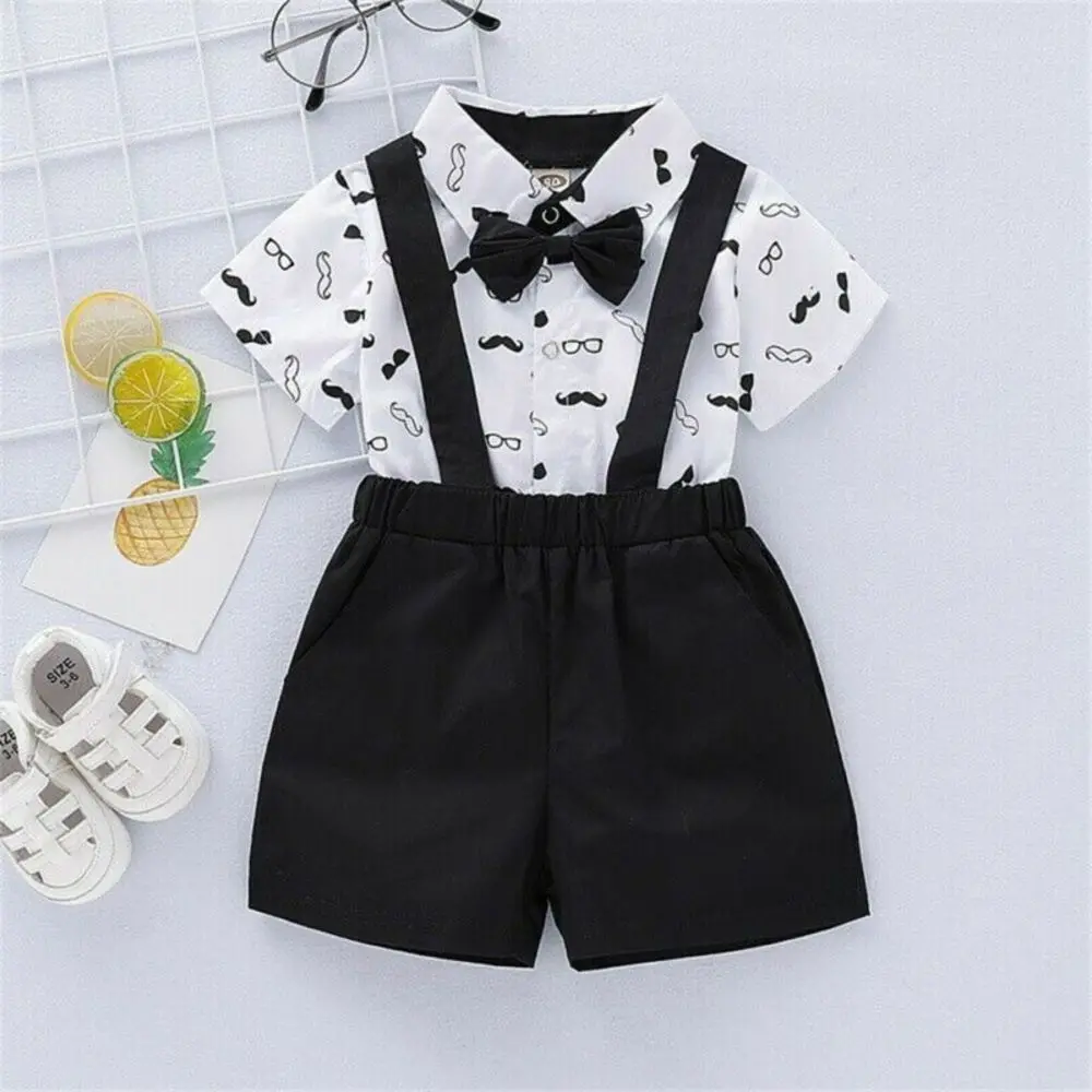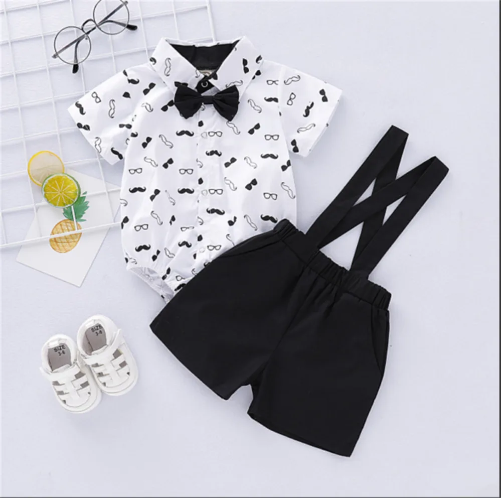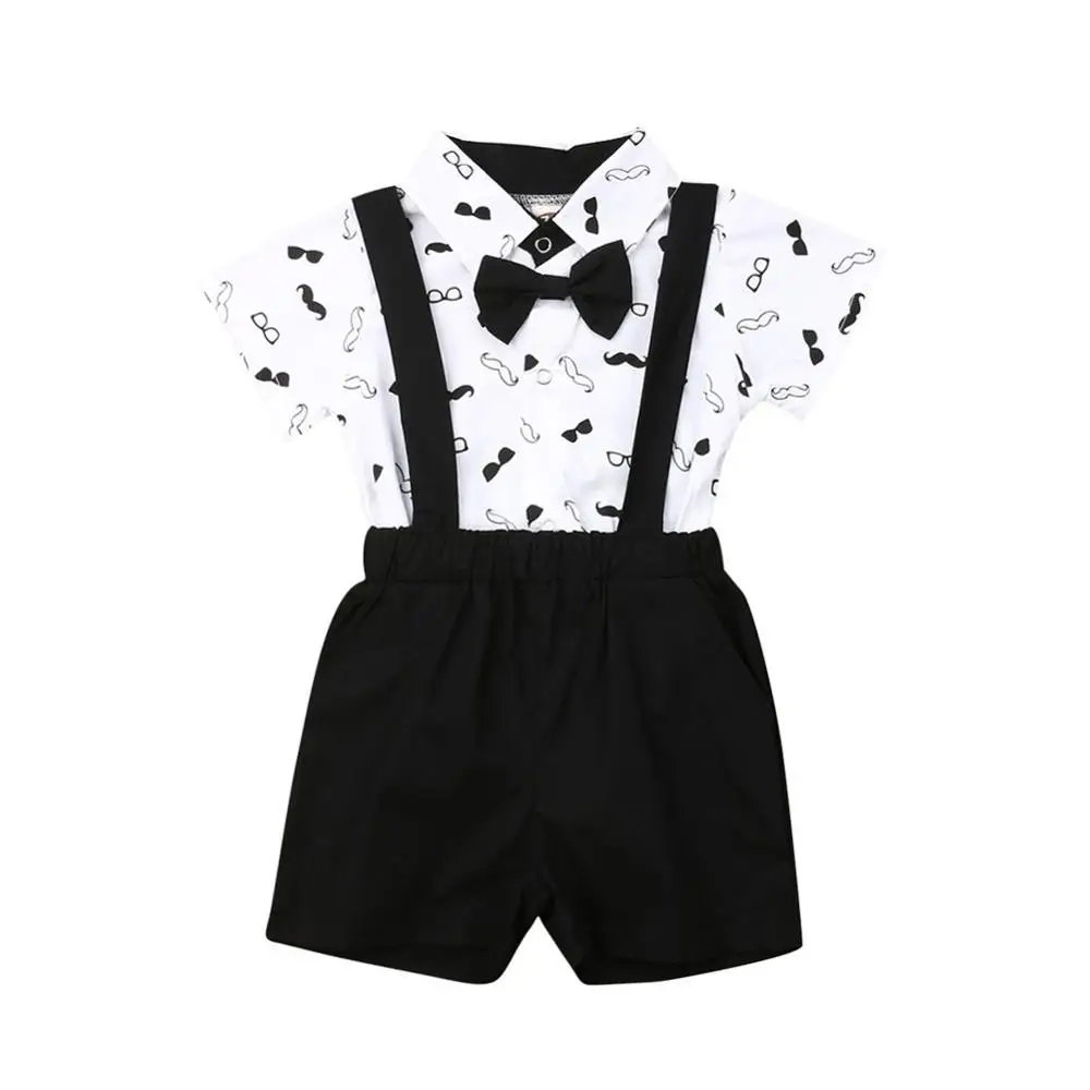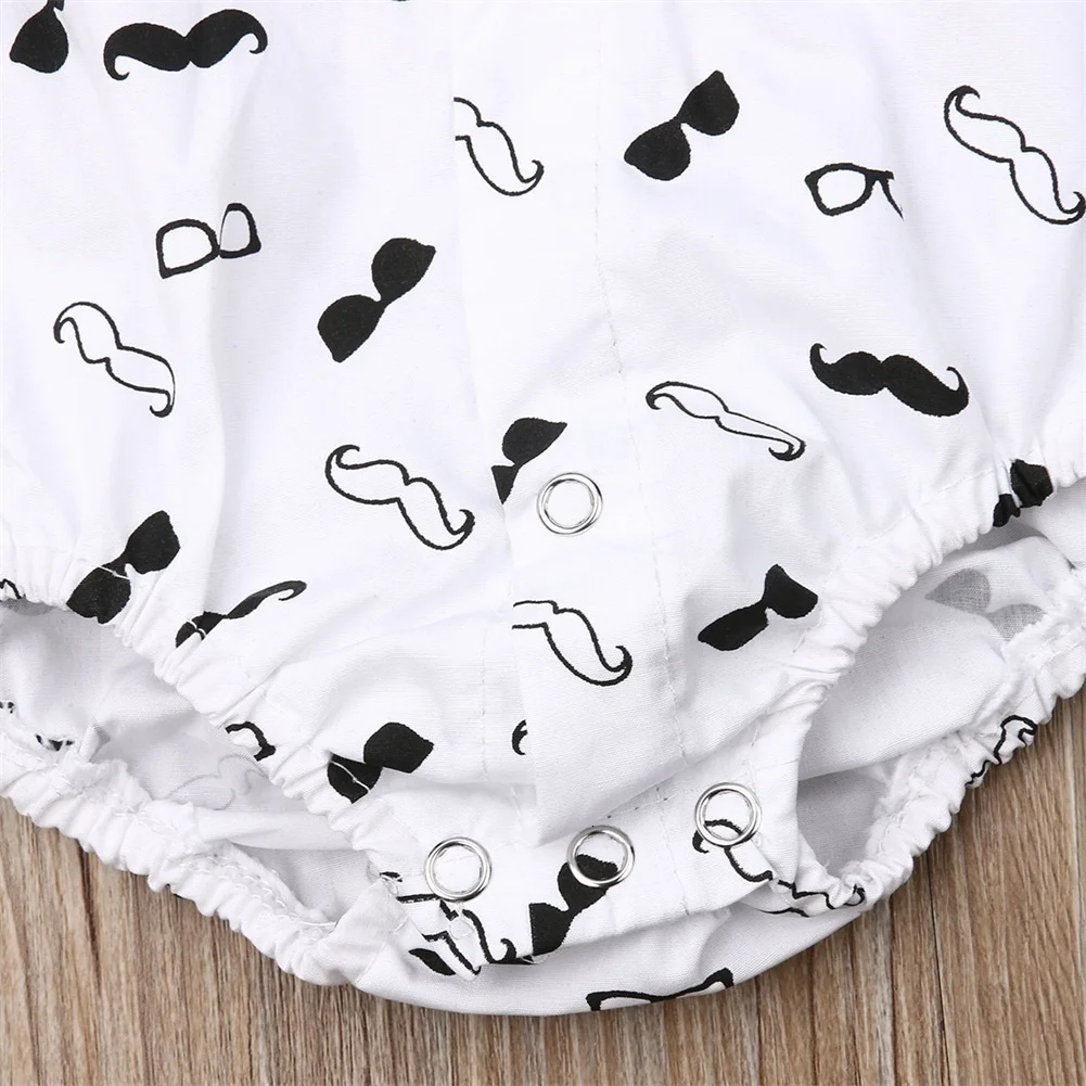 Одежда с отложным воротником для маленьких мальчиков, официальный костюм с короткими рукавами и принтом на свадьбу, крестины, комбинезон для новорожденных от 0 до 24 месяцев