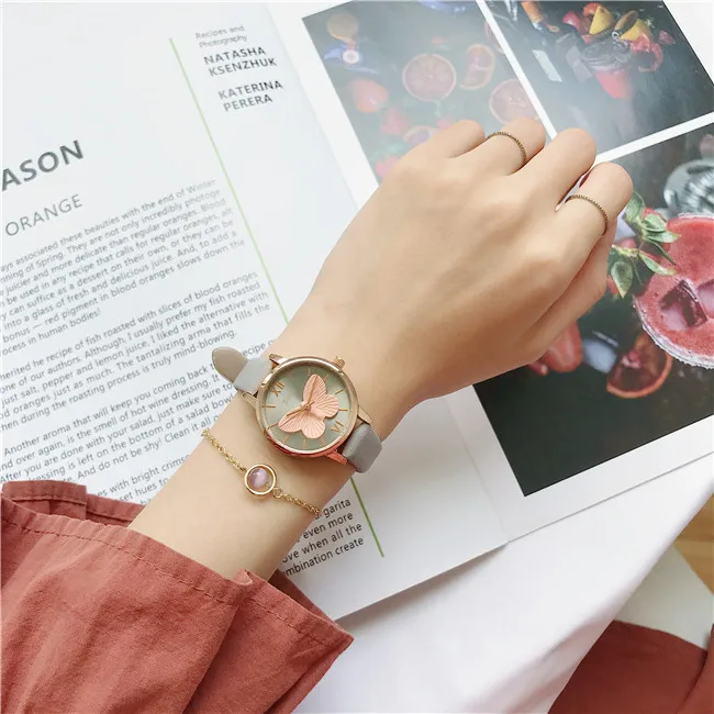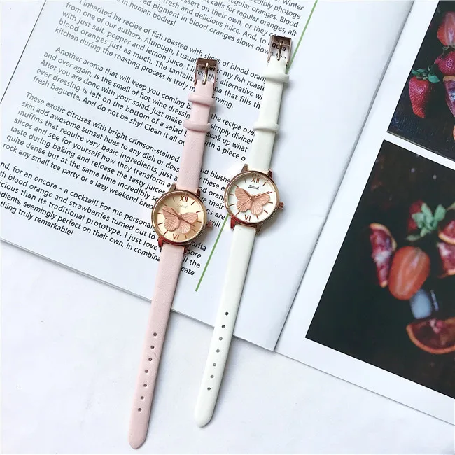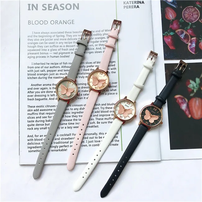3D бабочка креативный Досуг уникальные женские кварцевые часы, простой женские часы под платье Женские Элегантные повседневные часы reloj mujer