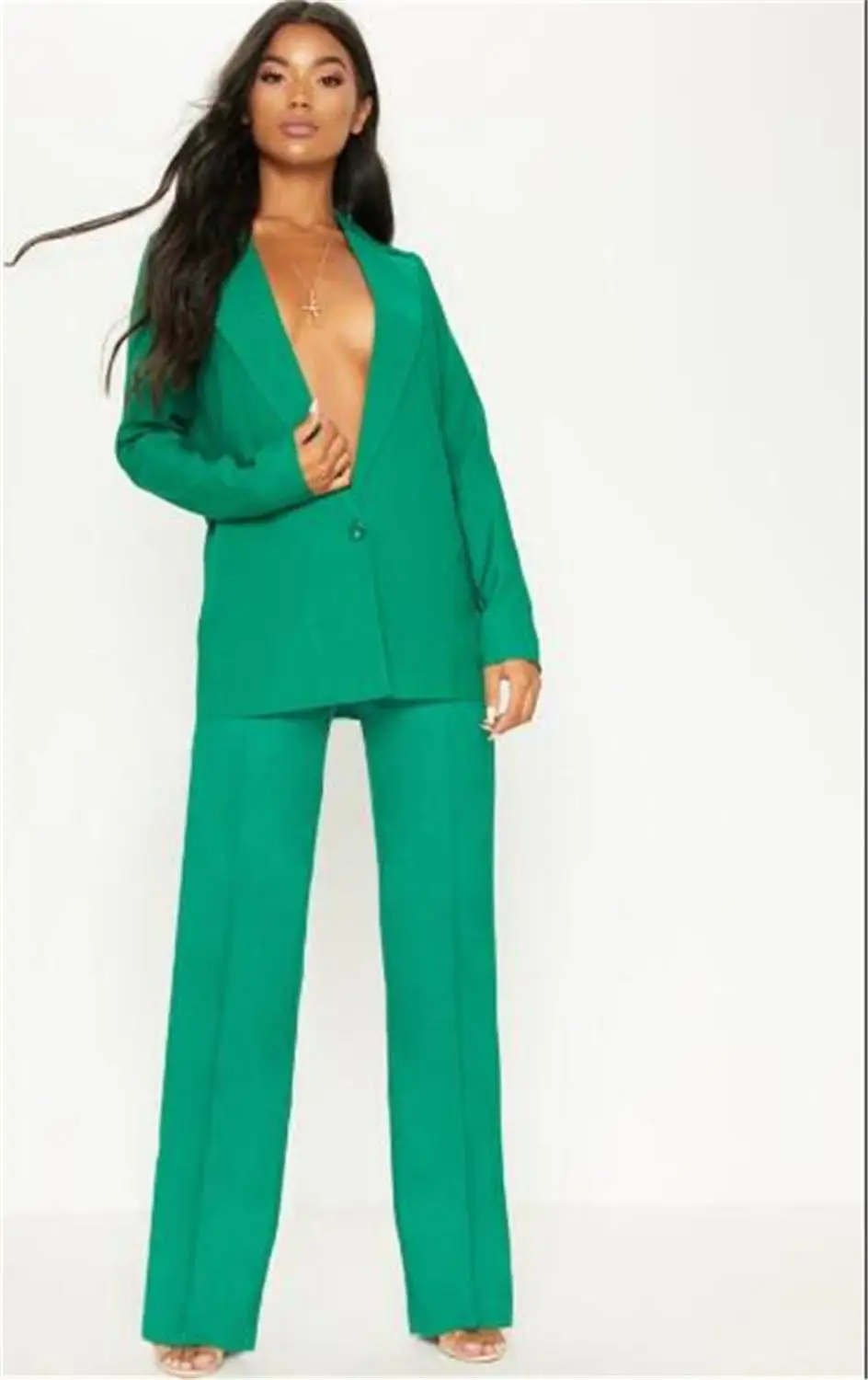 Зеленый женский брючный костюм смокинг комплект из 2 предметов (пиджак + брюки) Женский деловой костюм Женская Офисная Униформа женские брючные костюмы на заказ