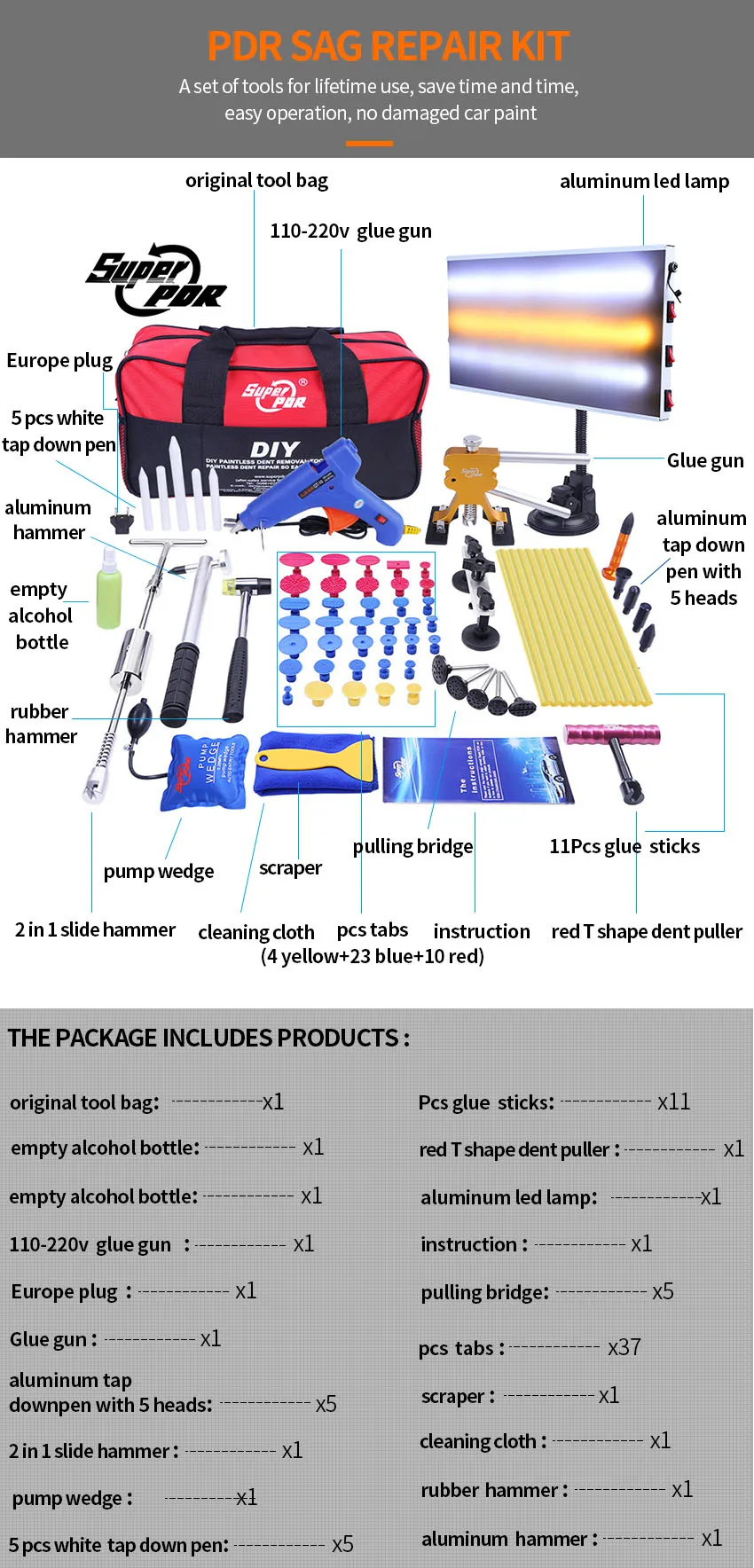 Супер PDR скользящий молоток резиновый молоток клеевой пистолет Клеевые стержни кран вниз ручка светодиодный ная линия доска кузова автомобиля вмятины Инструменты для ремонта авто