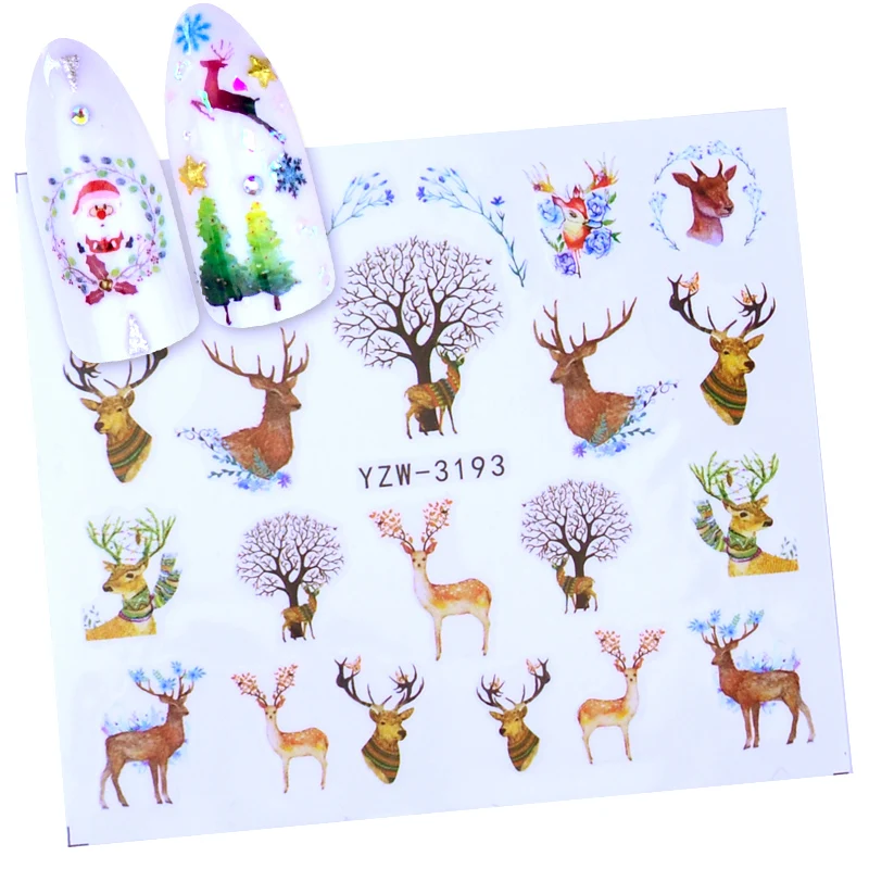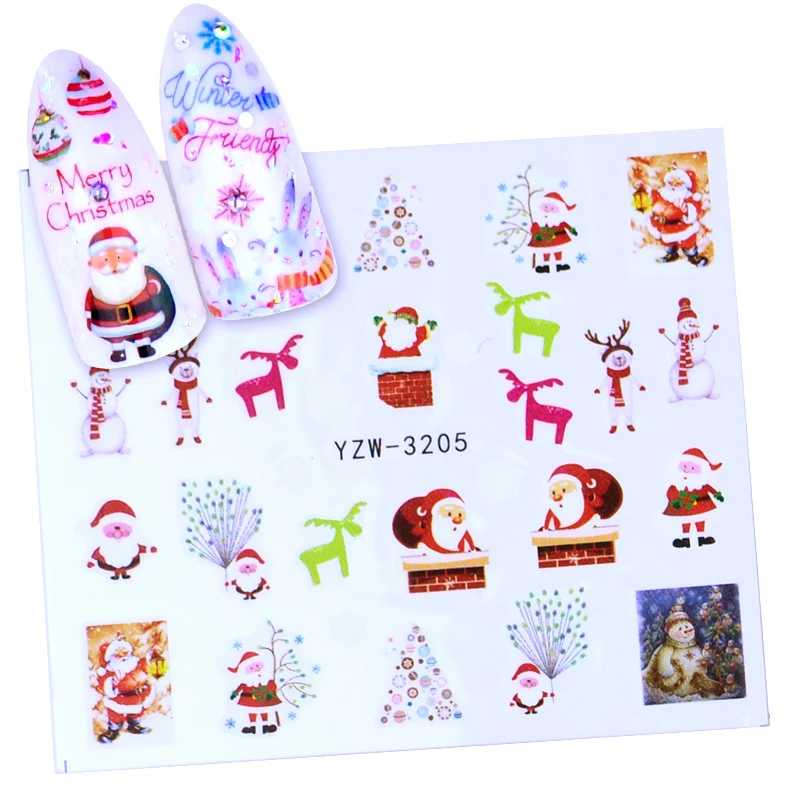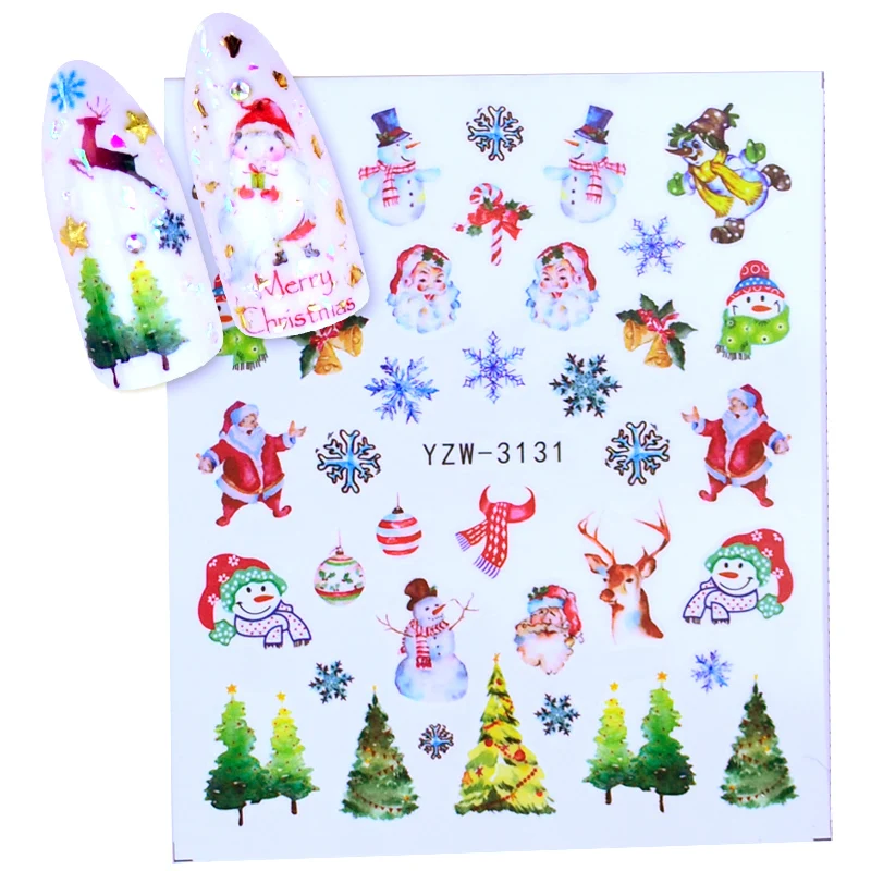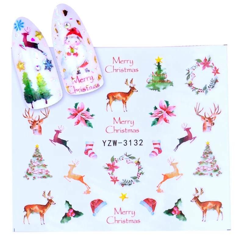 Переводные наклейки для ногтей на Рождество, Новый Год, 1 шт.