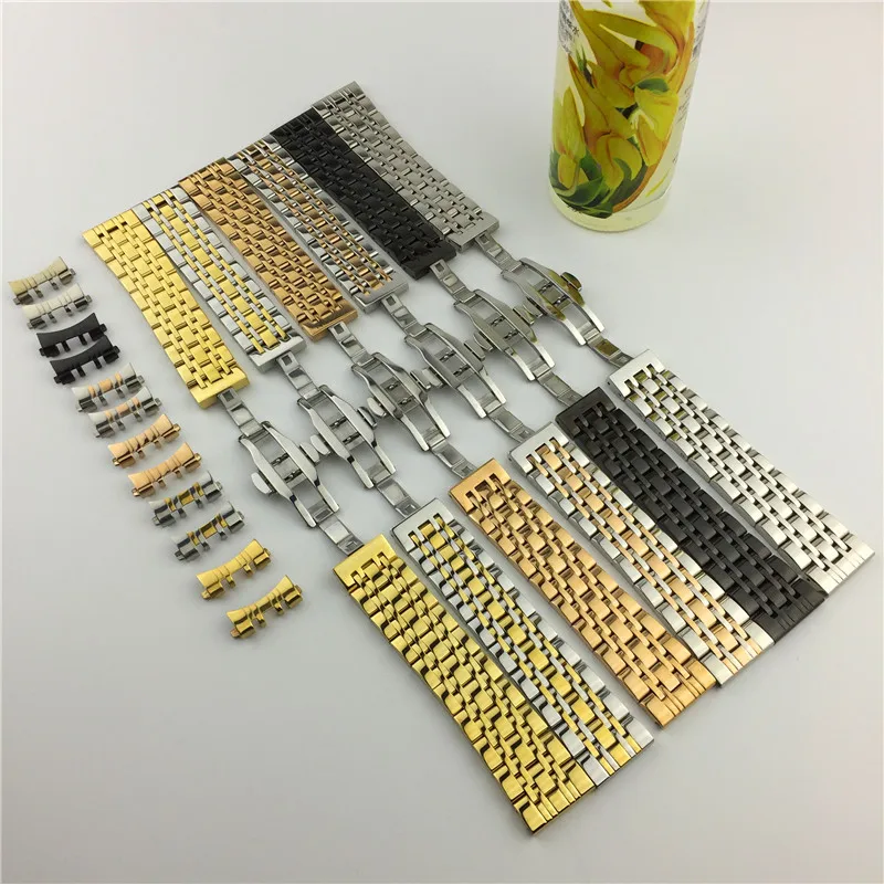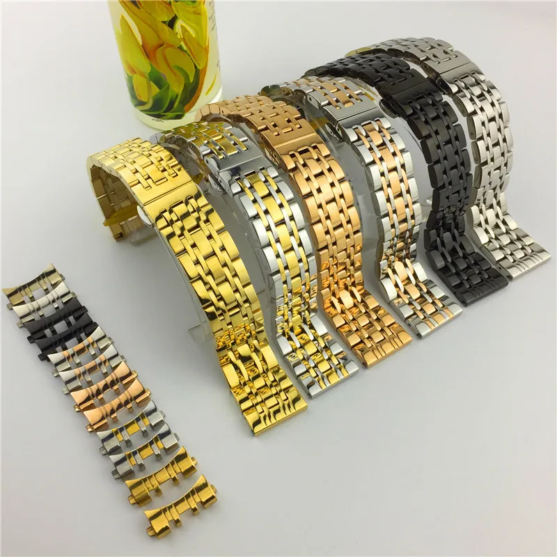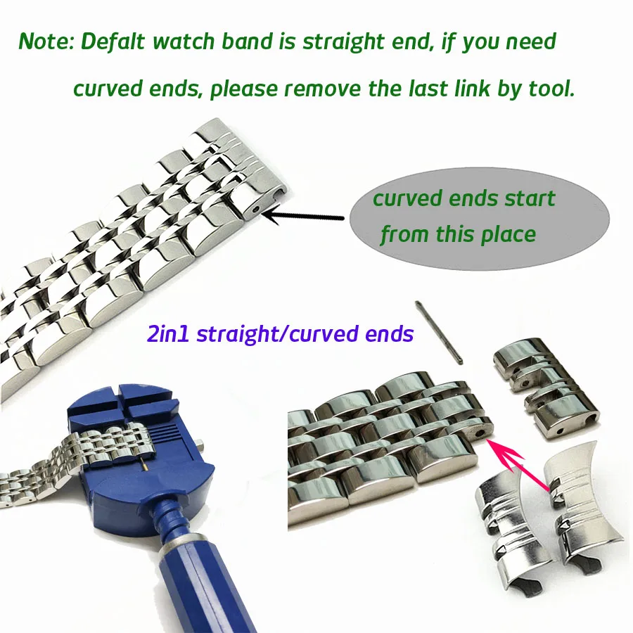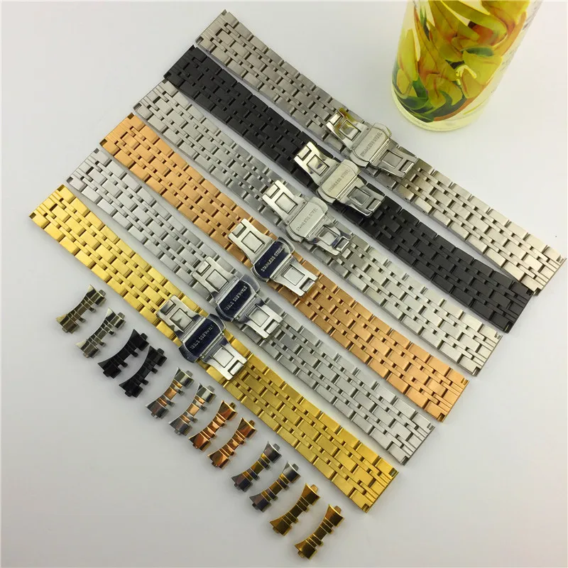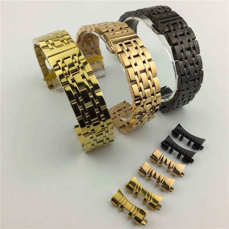 Ремешок из нержавеющей стали для наручных часов, изогнутый прямой черный сменный Браслет 2 в 1, 12 14 15 16 17 18 19 20 21 22 23 26 24 мм
