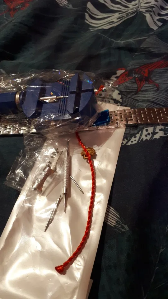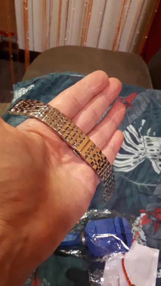 Ремешок нормальный. Немного огорчен. Дополнительные изогнутые концы не подошли к моим часам. При установки - получаются большие зазоры. Полирован с лицевой стороны и по бокам. С внутренней стороны матовый и даже есть царапины. Застежку будем испытывать. Очень маленькие крючки. Насколько их хватит неизвестно. Вес не измерял. Но вроде бы похож как в описании. По поводу материала проверим, действительно ли это нержавеющая сталь. Инструменты прислали. Комплект посылки совпадает с описанием.