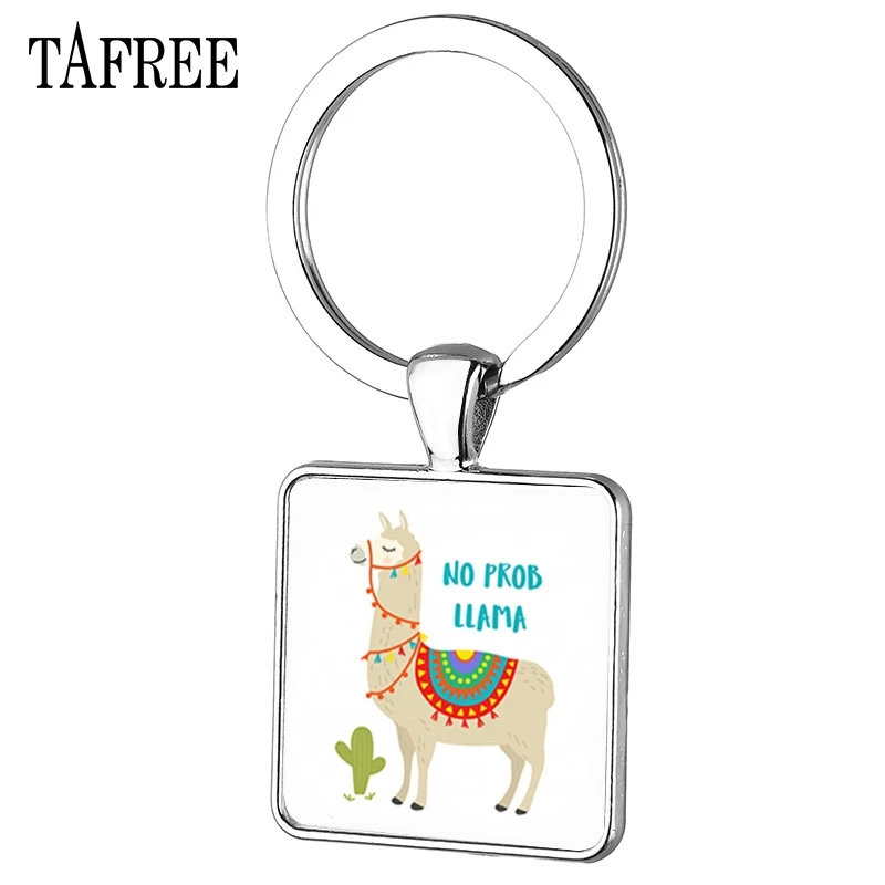 TAFREE Модный милый однотонный квадратный брелок с альпакой для женщин и девушек очаровательный брелок для автомобиля металлический брелок стеклянная круглая бижутерия YT48