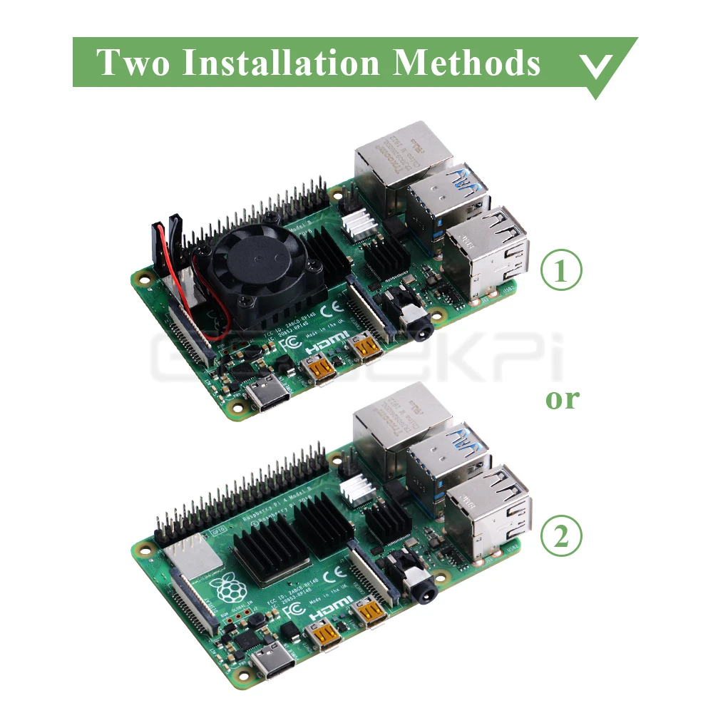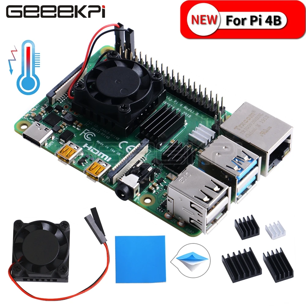 Новый оригинальный квадратный охлаждающий вентилятор GeeekPi с радиатором, комплект 12, двойной охлаждающий вентилятор, радиатор для Raspberry Pi 4B ( 4 Модель B)