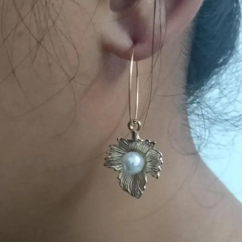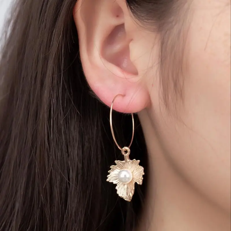 Женские серьги ручной работы в богемном стиле, длинные серьги с красными листьями абрикоса и жемчугом, с геометрическим узором, оптовая продажа