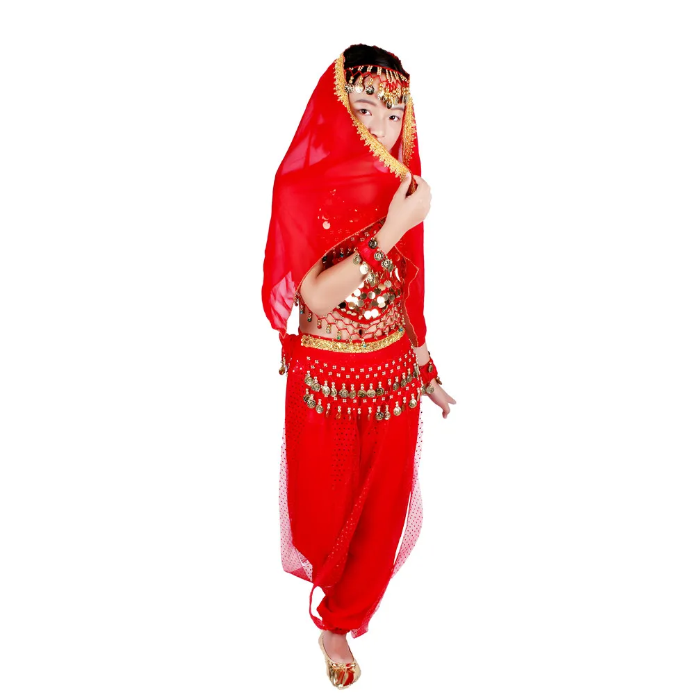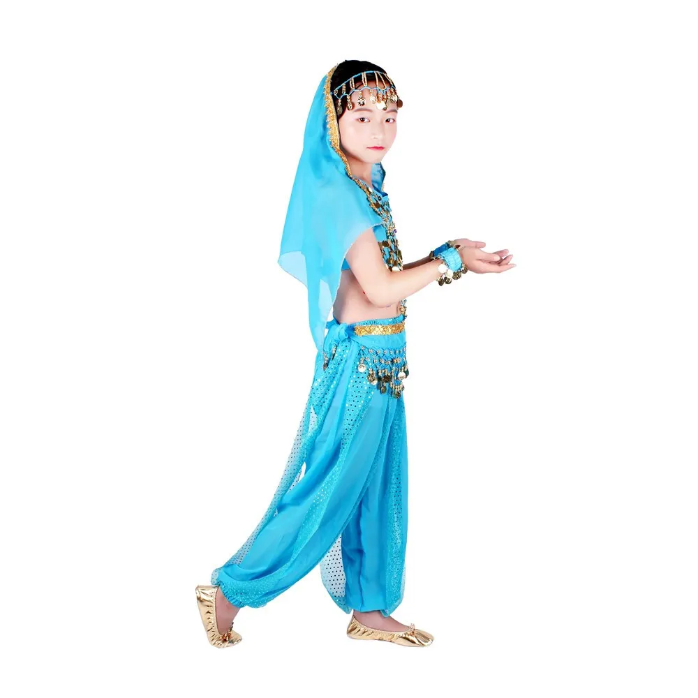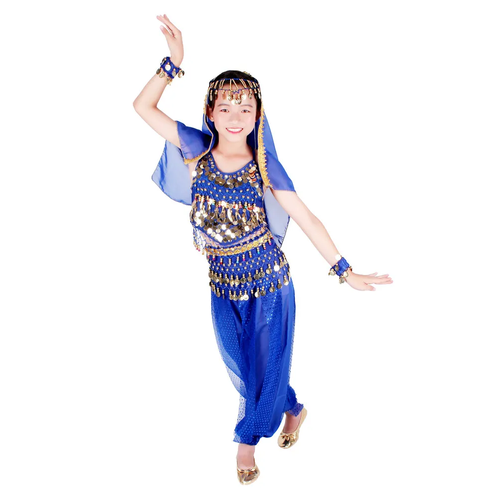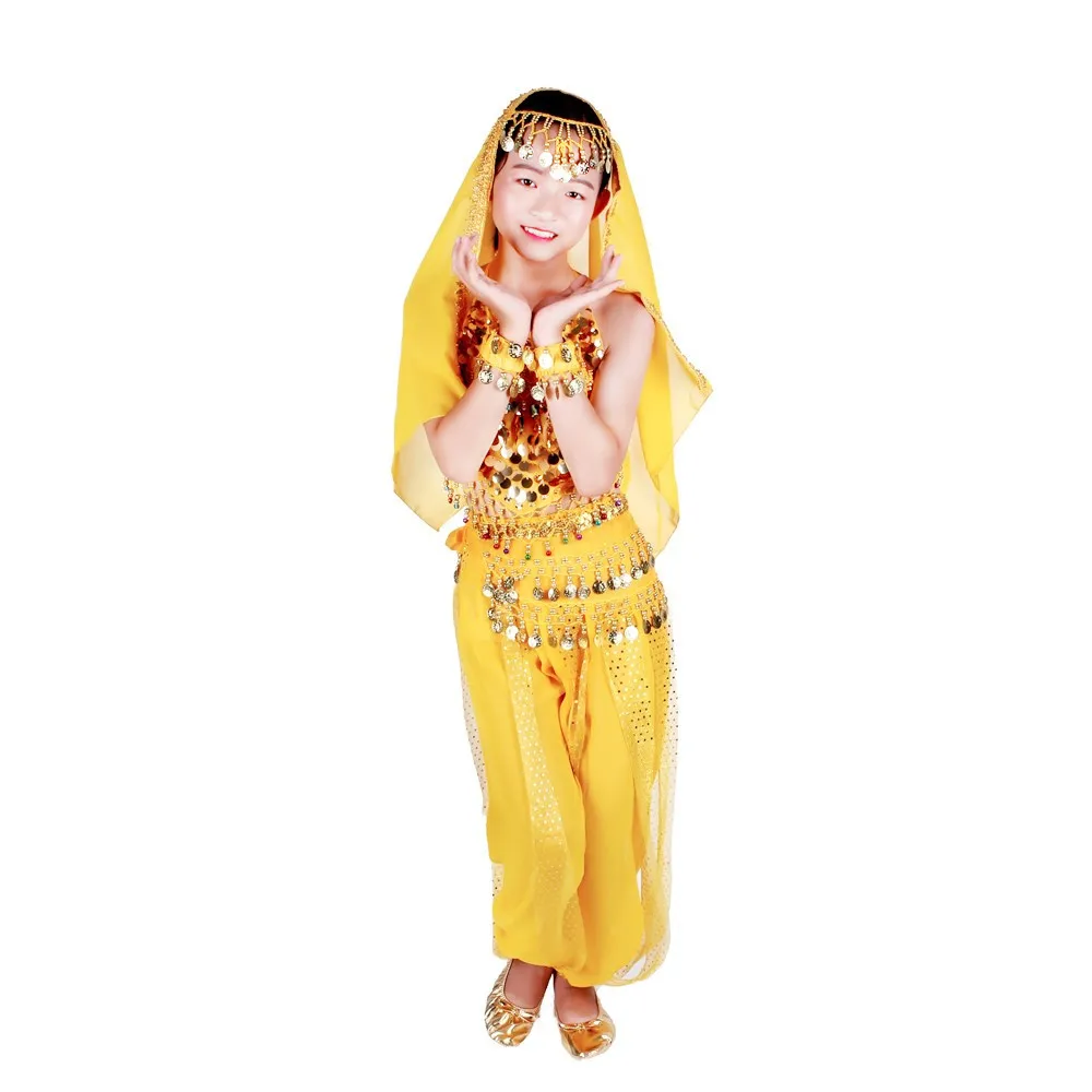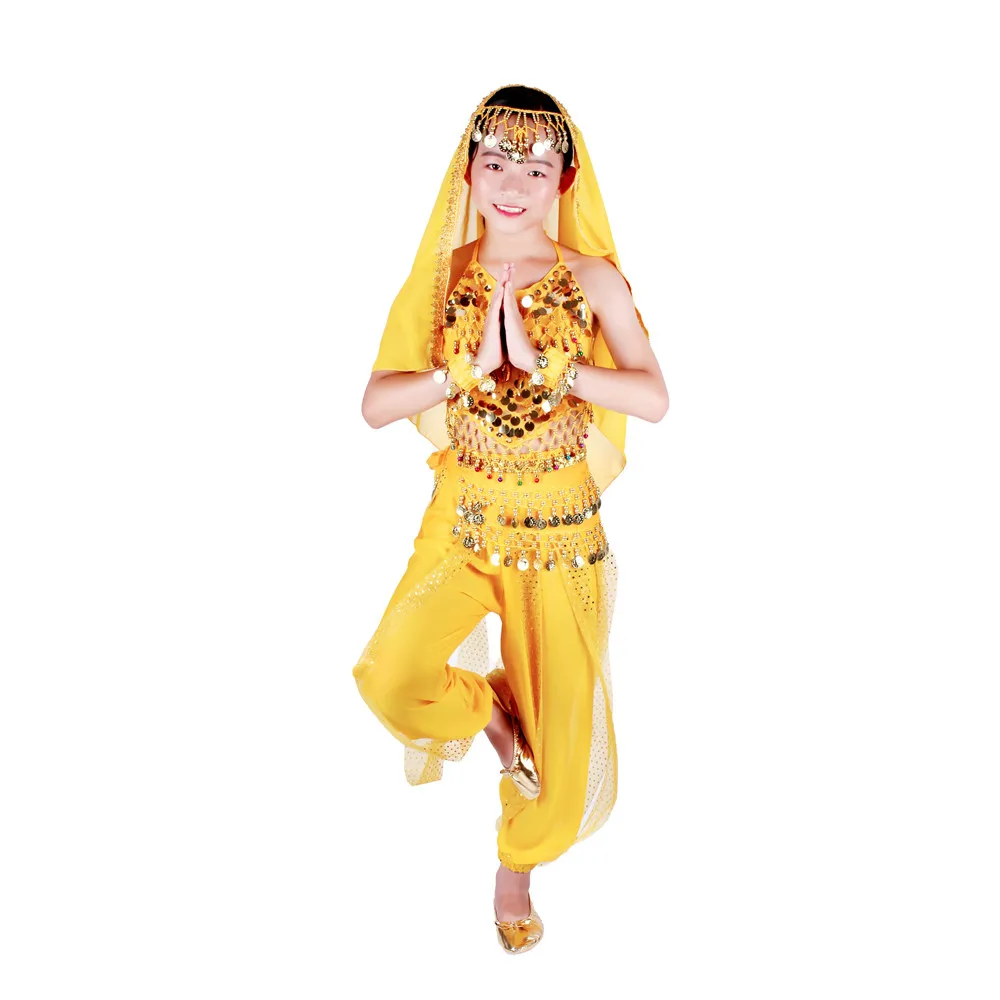 Детские костюмы для восточных танцев живота, комплект одежды для индийских Танцев Живота, 6 цветов