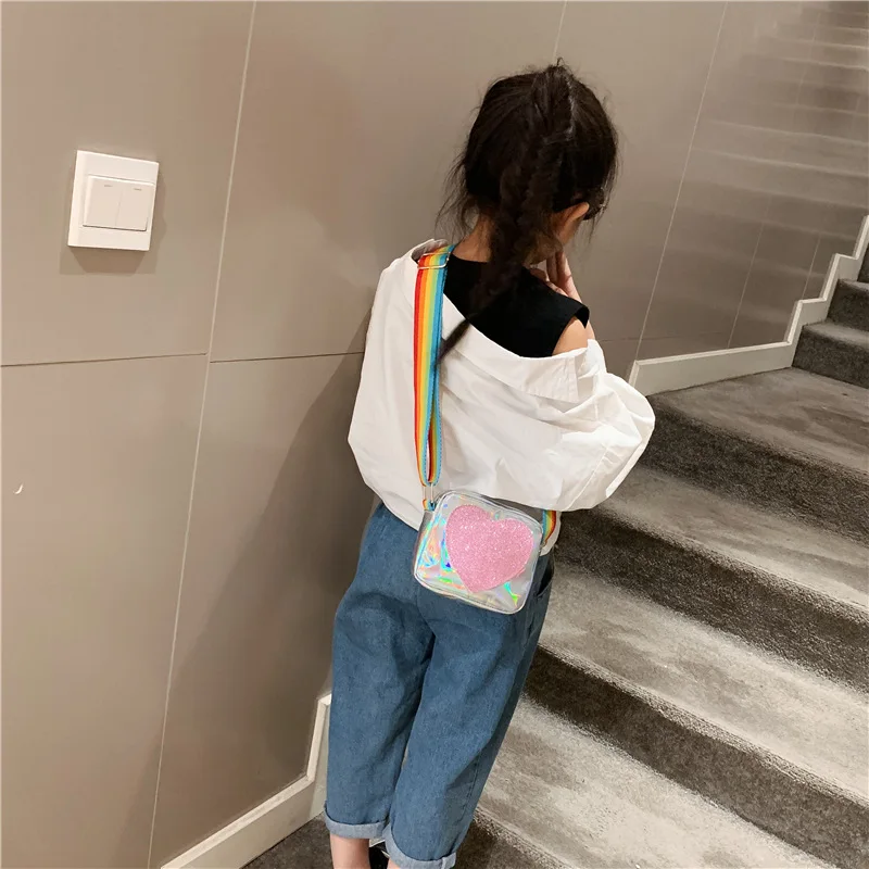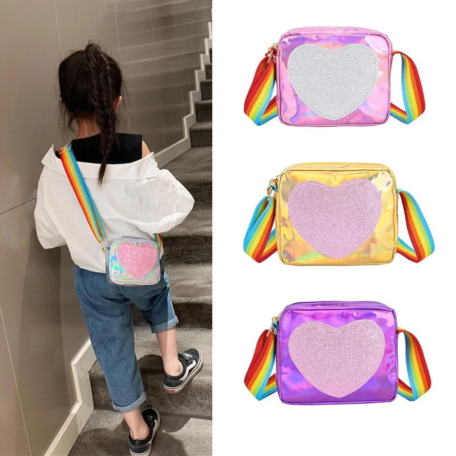 Мини-сумки для девочек, сумки через плечо с лазерным сердцем для маленьких девочек, маленький кошелек, сумка-мессенджер, сумочка с клапаном
