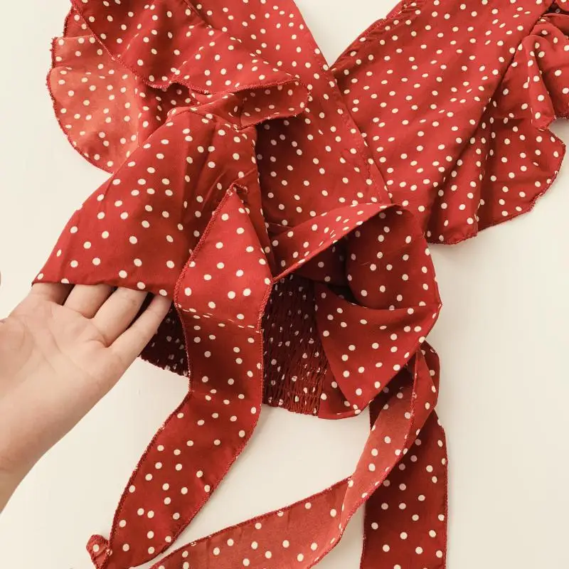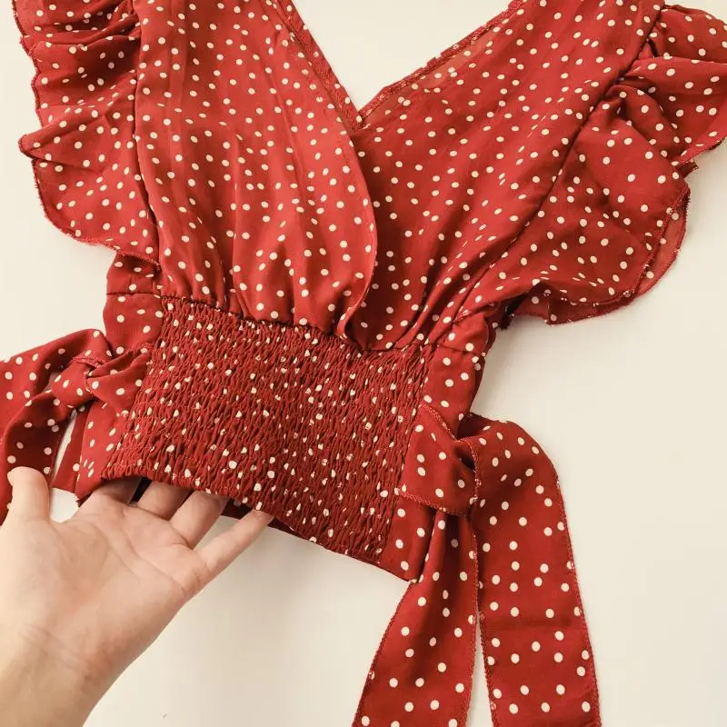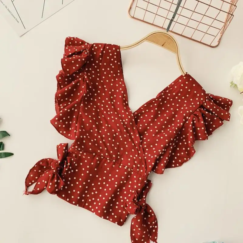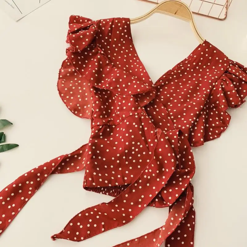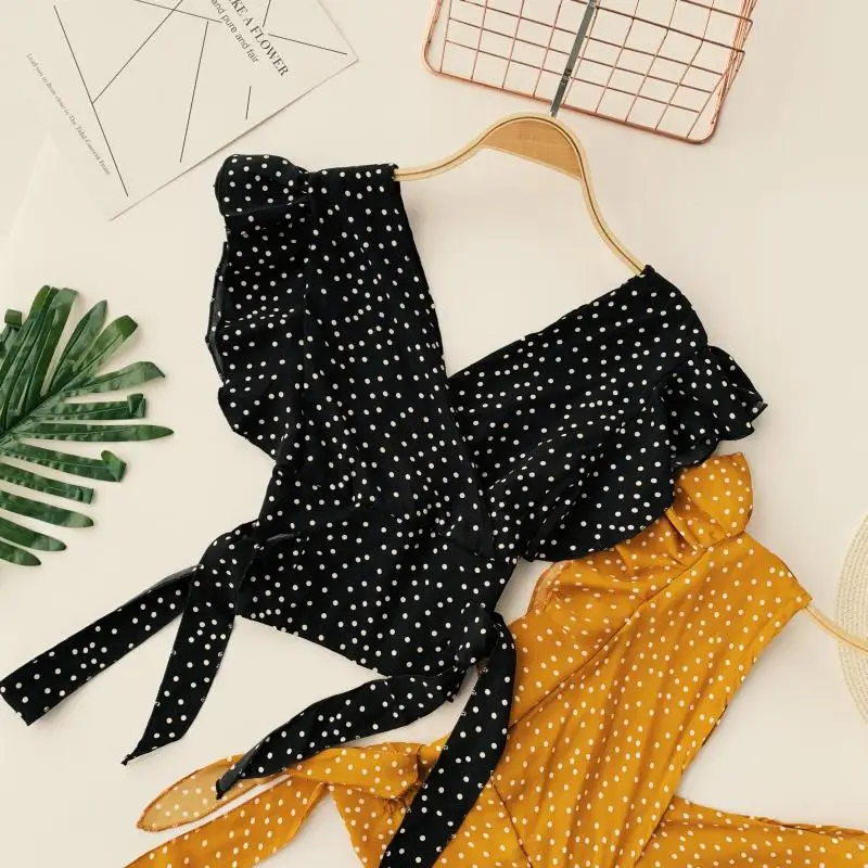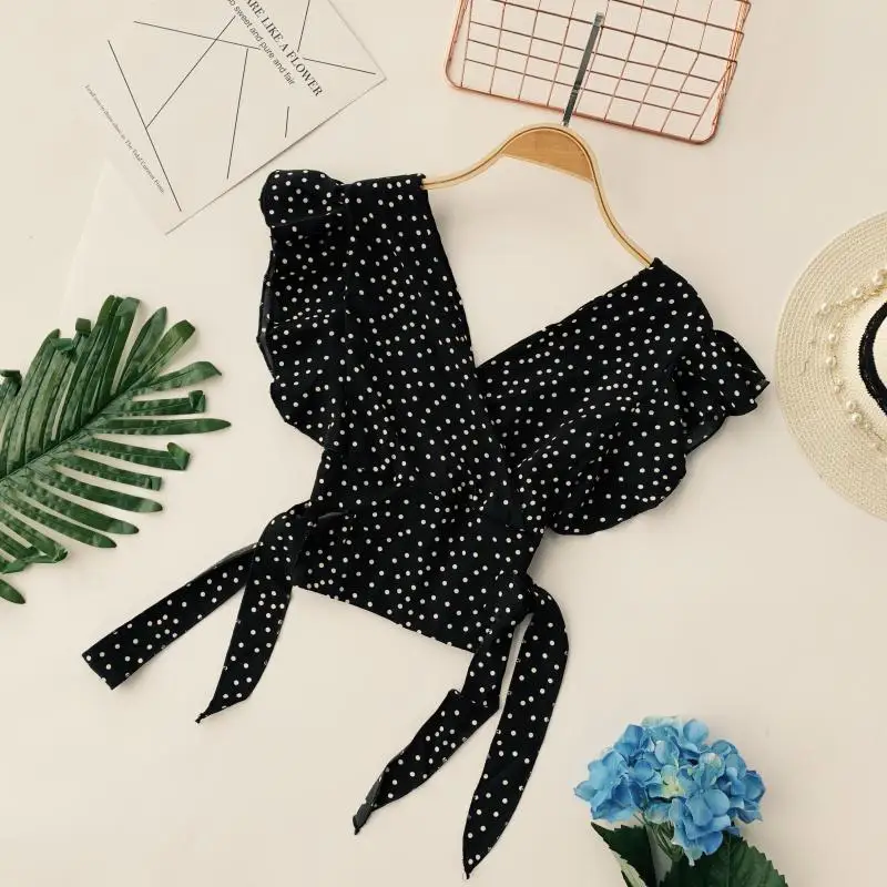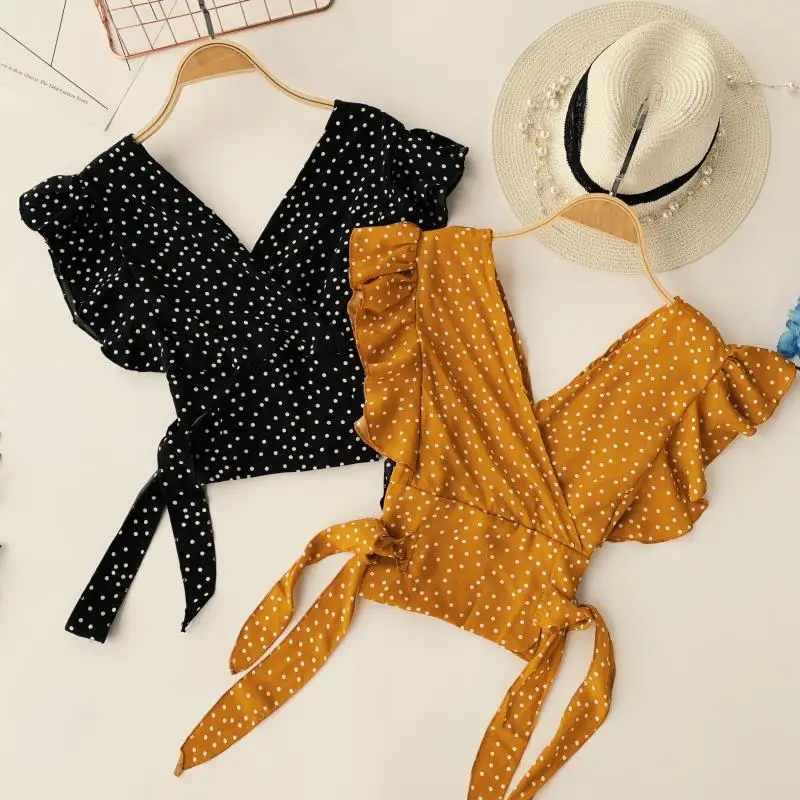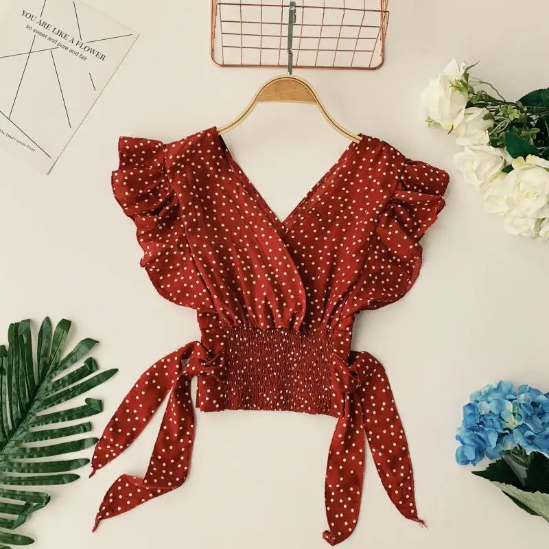 Женская шифоновая блузка в горошек, с V-образным вырезом и высокой талией