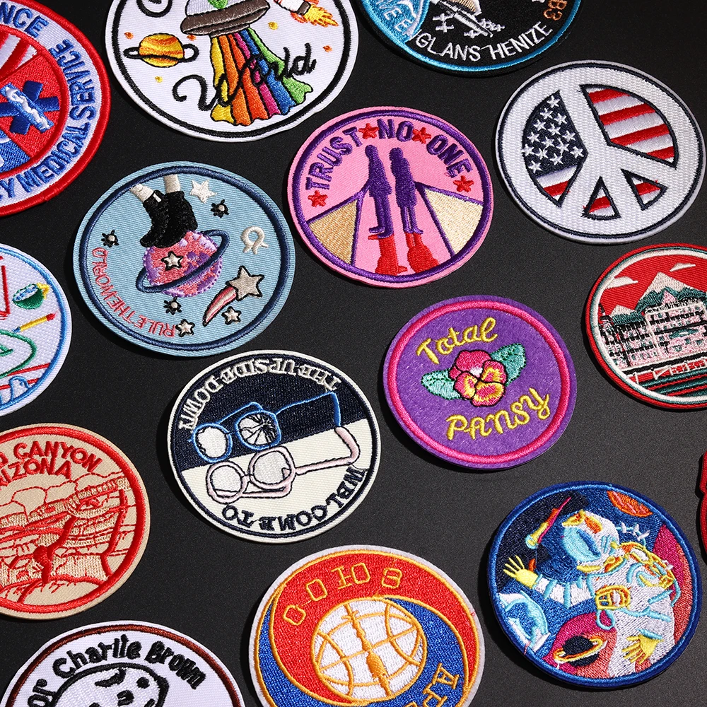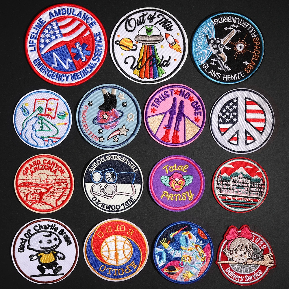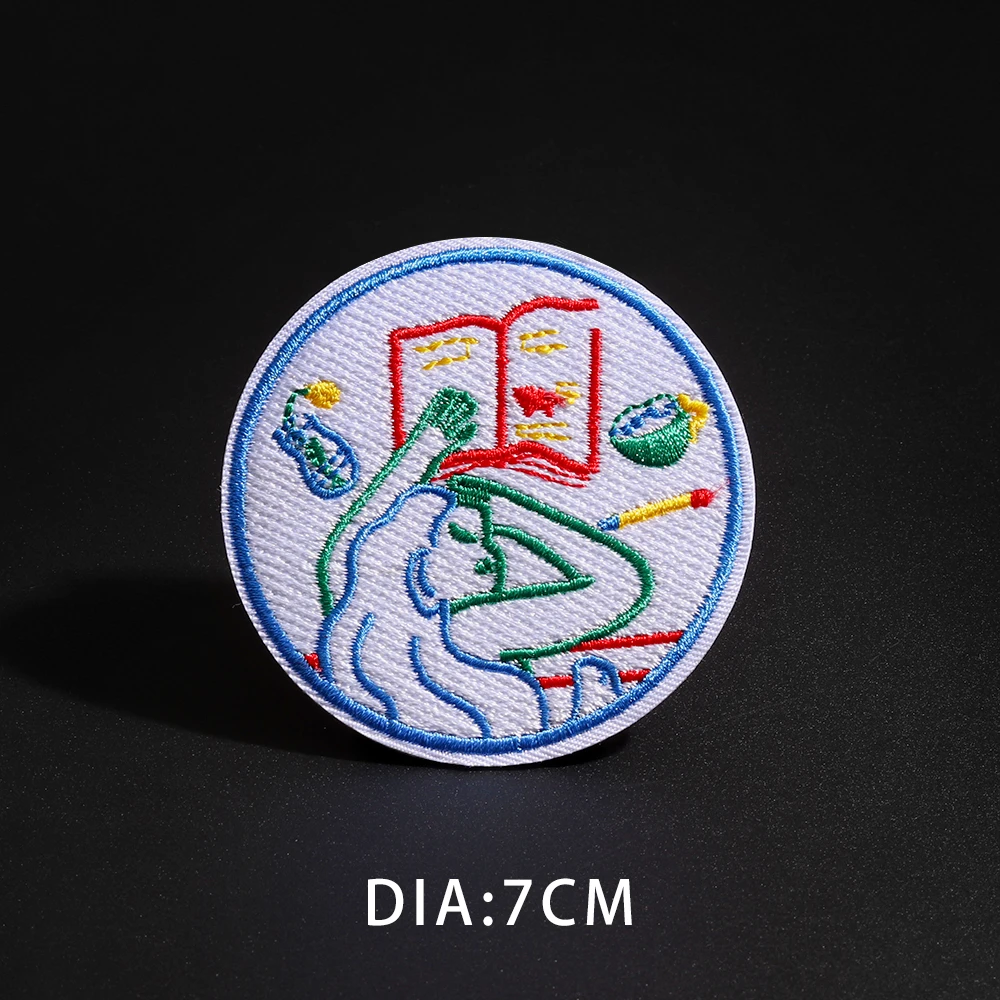 Изящный круглый логотип, вышитая аппликация, железная наклейка, 3D Diy, Школьное домашнее задание, Декор