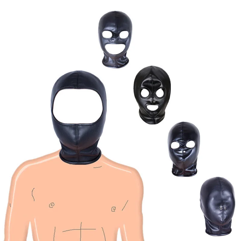Черная маска на голову из искусственной кожи, БДСМ, бондаж, маска на голову, эротические Соблазнительные костюмы для косплея, Экзотическая одежда, секс-игрушки