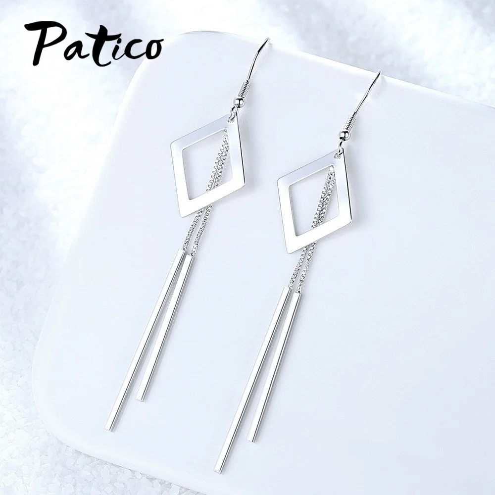 Модные серьги-подвески из стерлингового серебра 925 пробы с длинной кисточкой и геометрическим узором для женщин и девушек, изысканная цепочка с подвеской в виде пирсинга Brincos