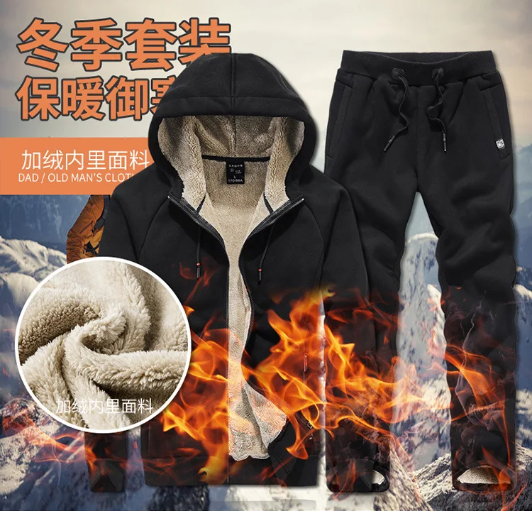 Спортивный костюм мужской, из хлопка и кашемира, утепленный, зимний, Повседневный, толстовка с капюшоном