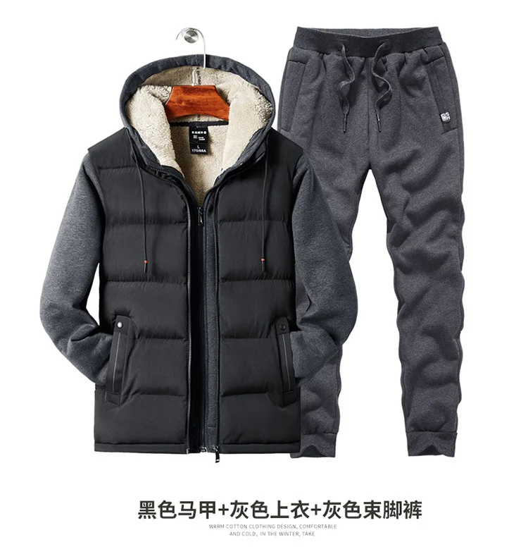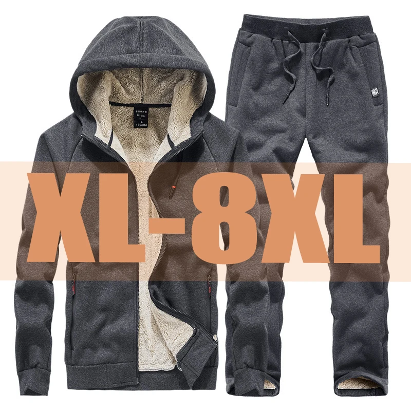 Мужской спортивный костюм, толстовка с капюшоном, куртка + штаны, комплект из 2 предметов, зимний Повседневный хлопковый кашемировый утолщенный теплый костюм survetement homme