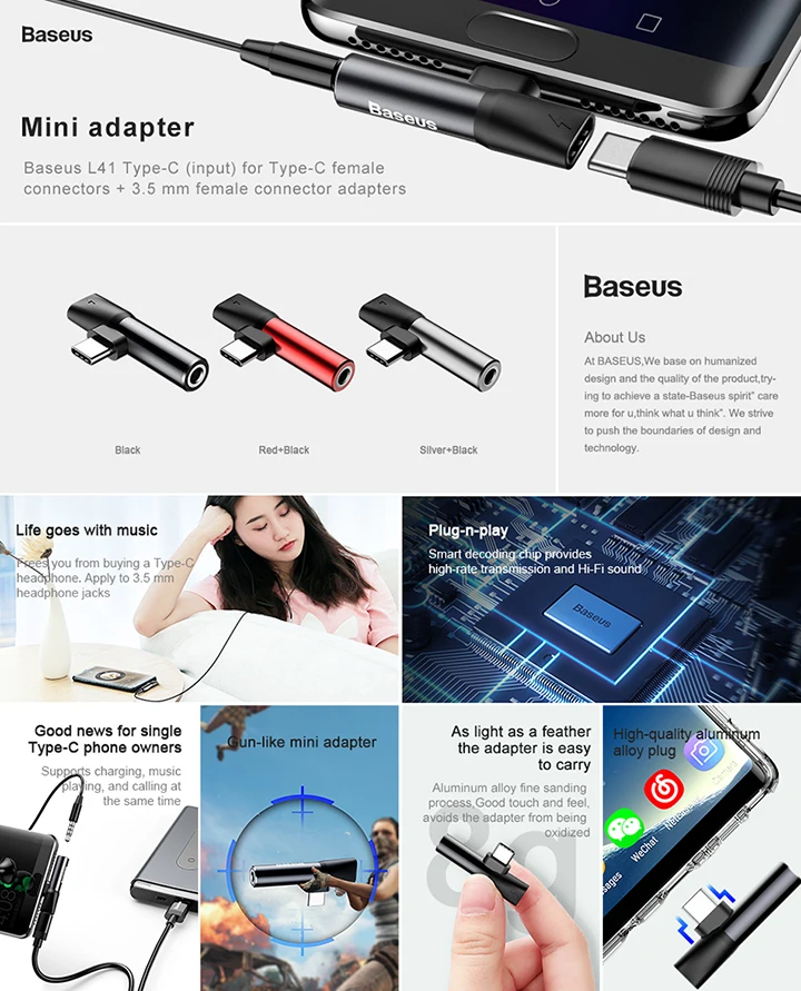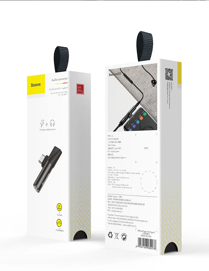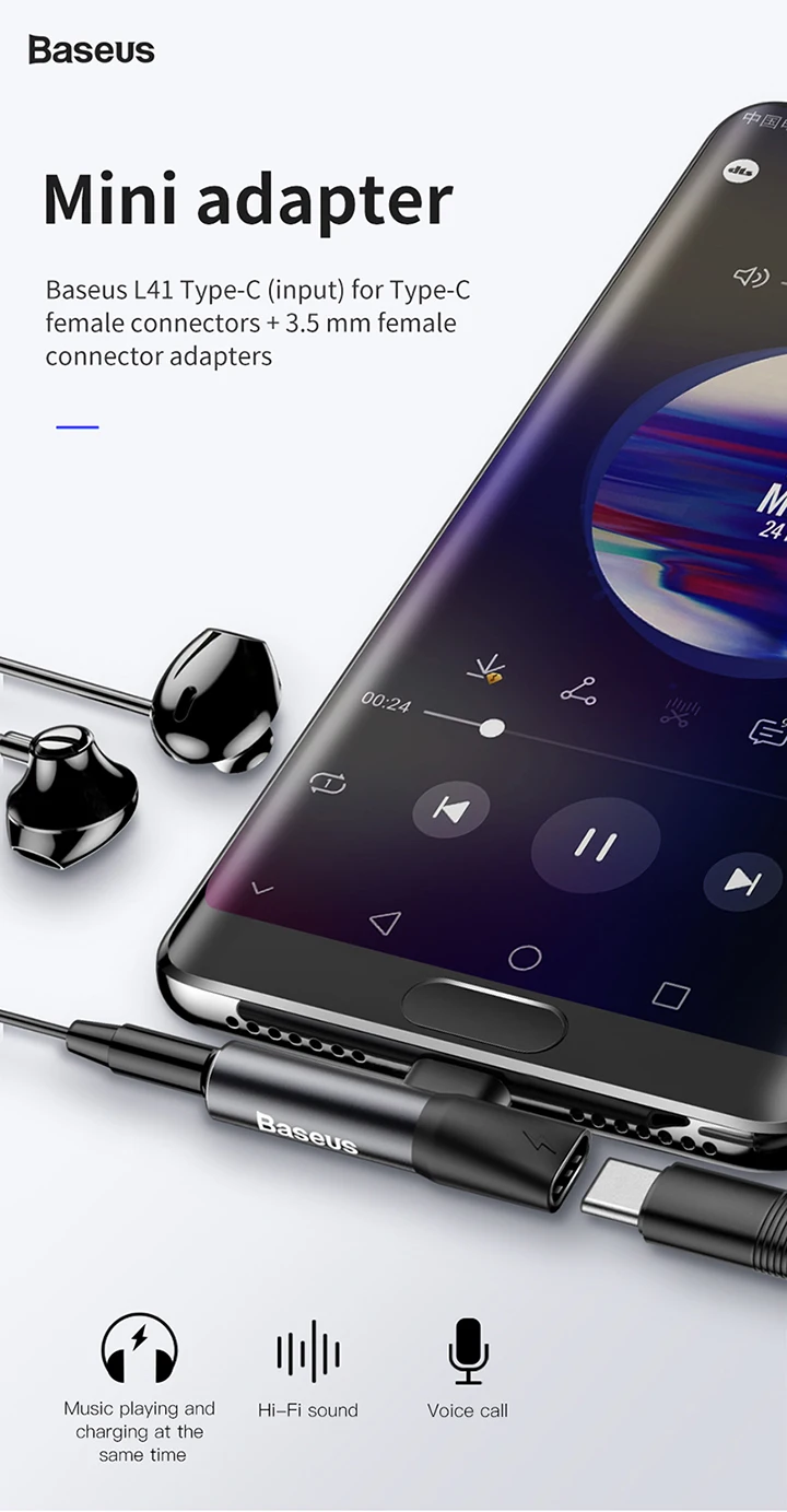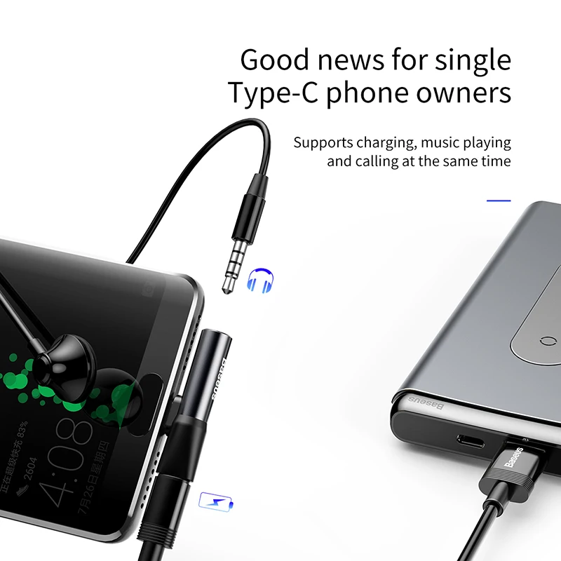 Переходник 2 в 1 Usb Type-CAux 3,5 мм, Baseus, для Xiaomi Mi9, Huawei Mate 20, P30 Pro