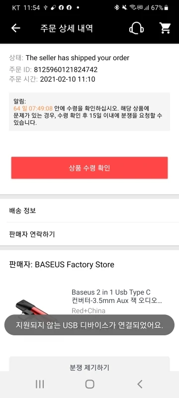 Доставка в течение 10 дней, качественная упаковка. Идеально работает на моем Huawei P30 pro.