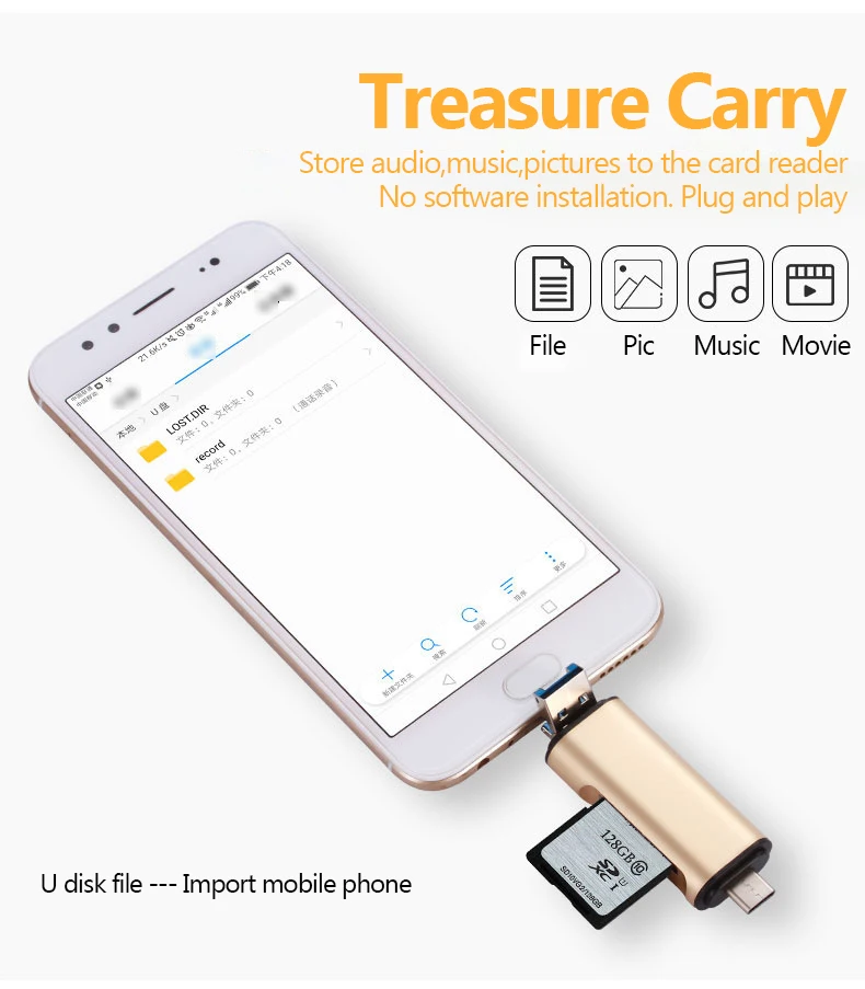 Кардридер UTHAI C03, Micro USB, USB 3,0, 3 в 1, высокоскоростной Универсальный адаптер TFSDV8 для ПК на базе Android