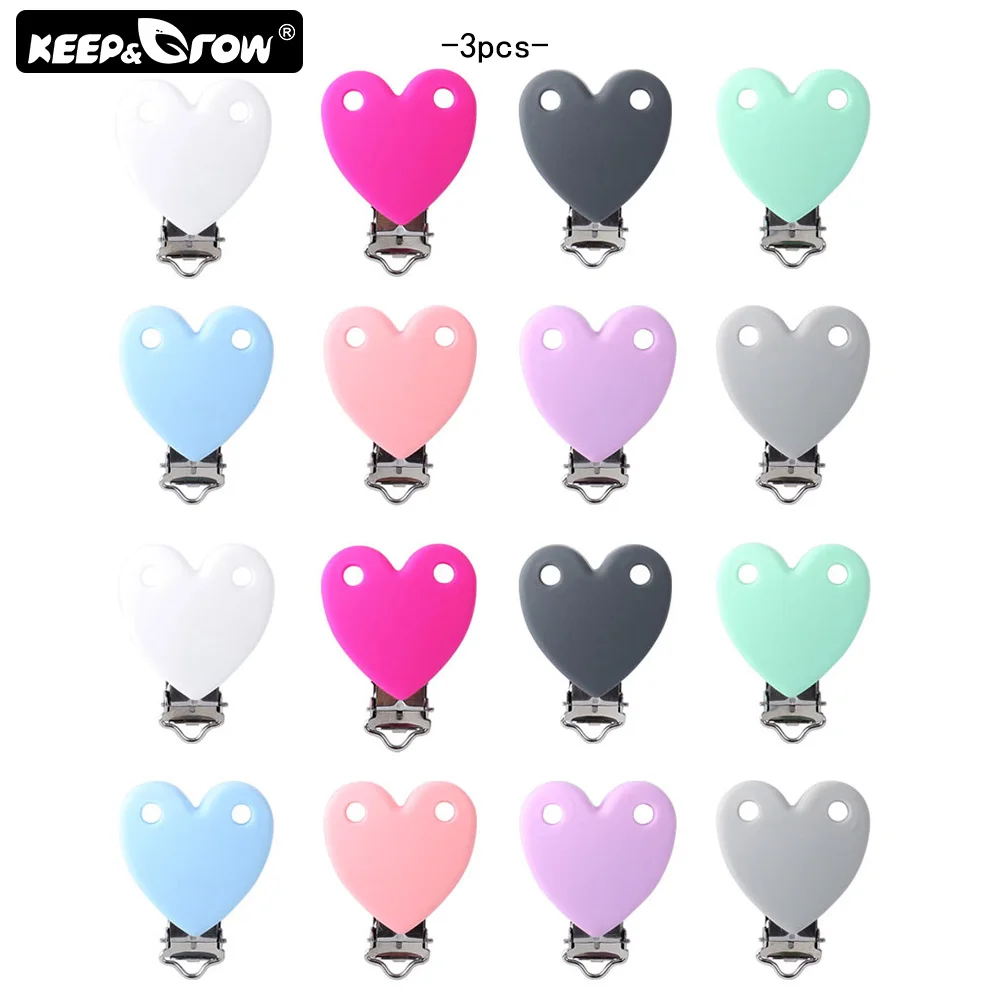 Item3Pcs Heart Shaped Silicone Pacifier Clips With Safety Holes