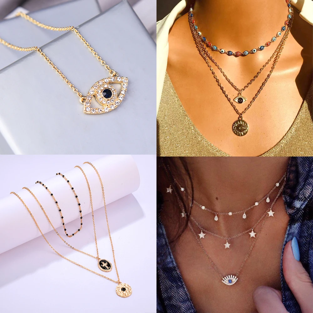 Изысканный кристалл сглаза кулон ожерелье для женщин Подарки Золотой цвет модные украшения оптом