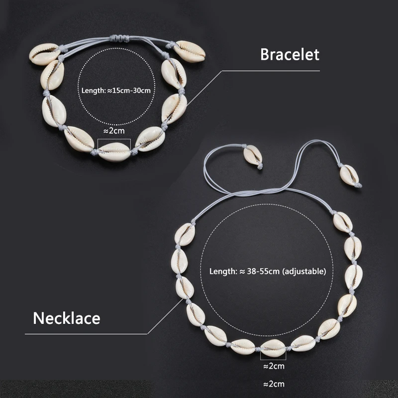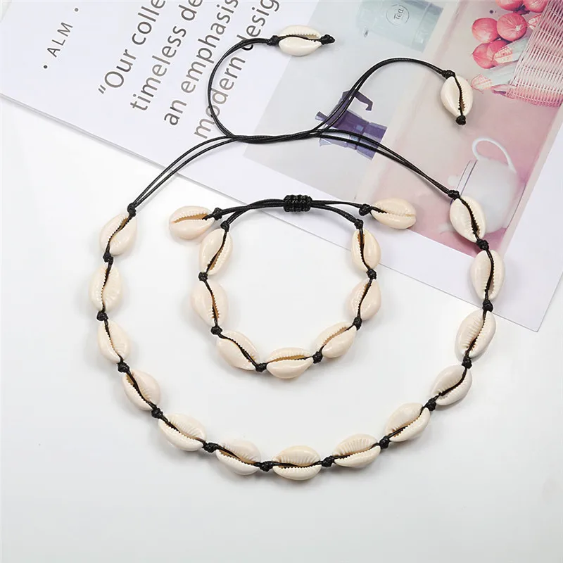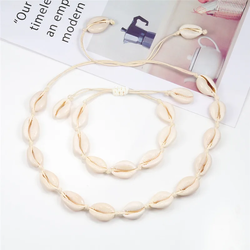 Женский комплект из ожерелья и браслета в стиле бохо, ошейник из белых морских ракушек, чокер ручной вязки, Ювелирное Украшение для девушек, подарок на день рождения