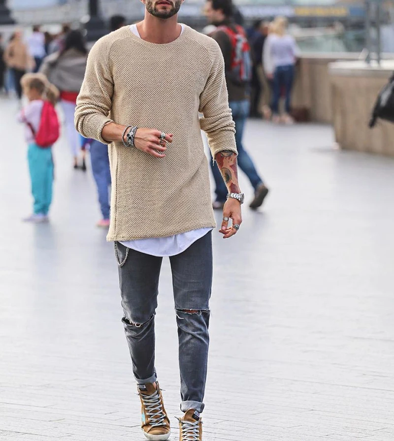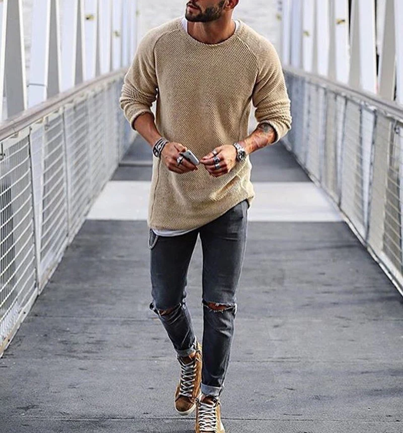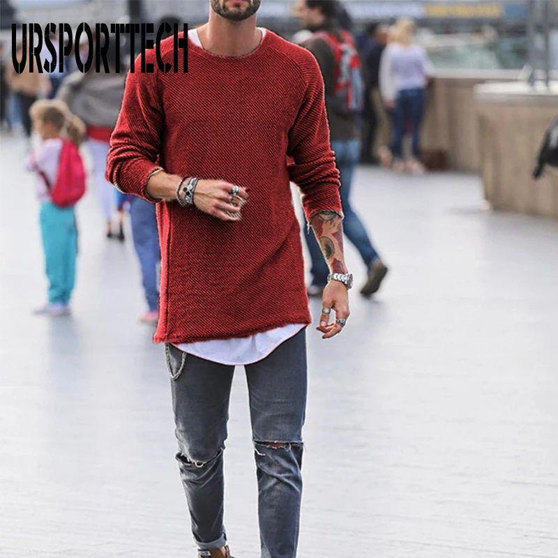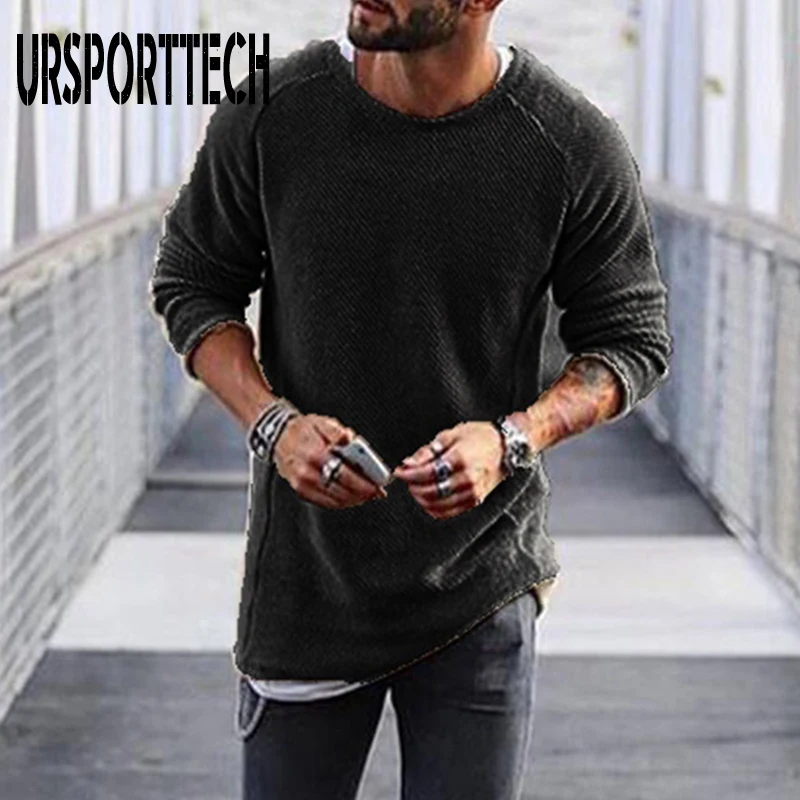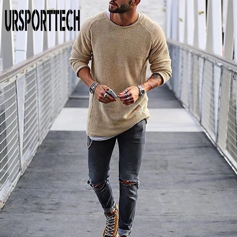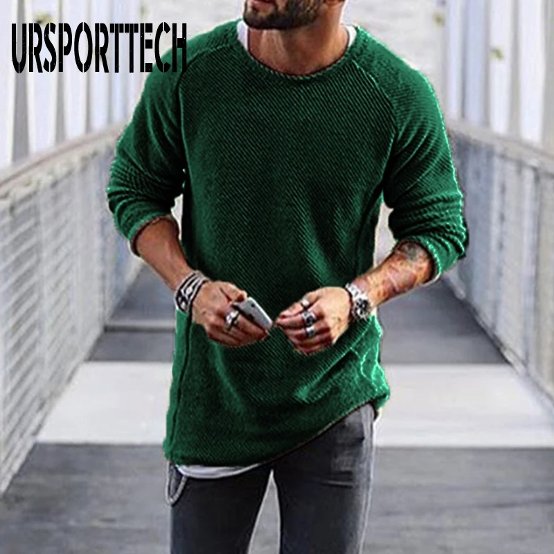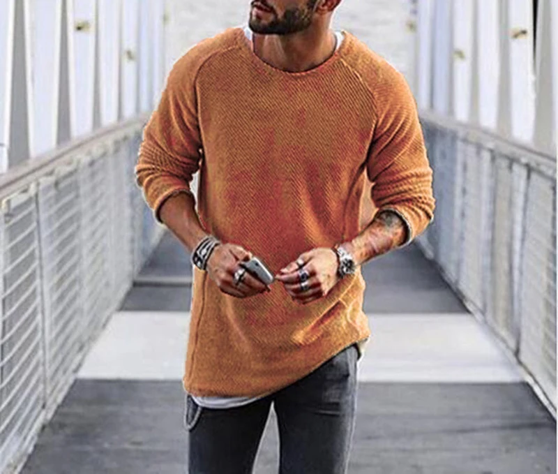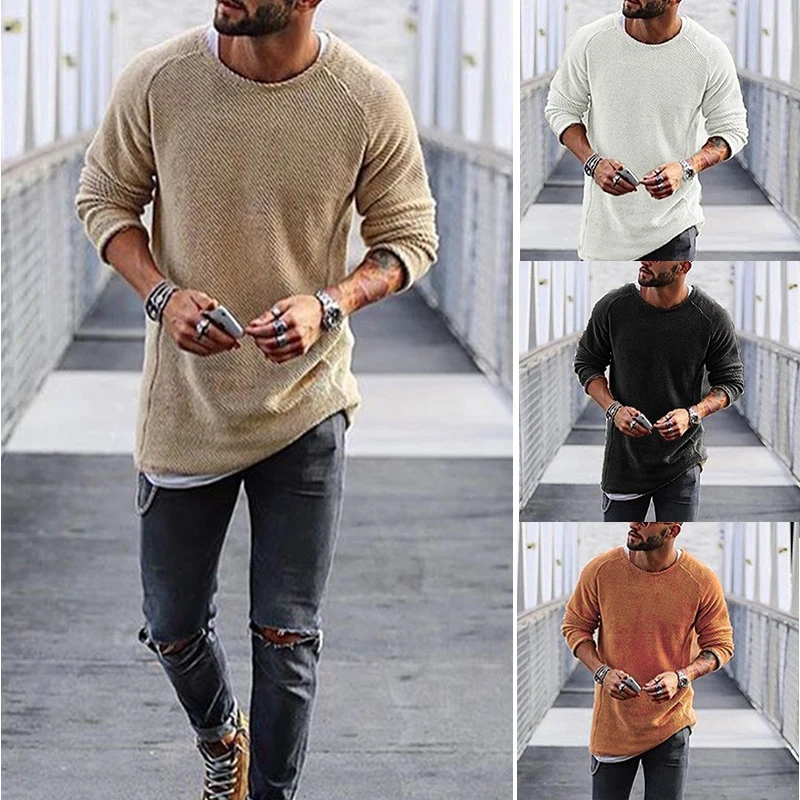 Мужской Повседневный пуловер с длинным рукавом и круглым вырезом, однотонный облегающий вязаный свитер для осени и зимы, 2019