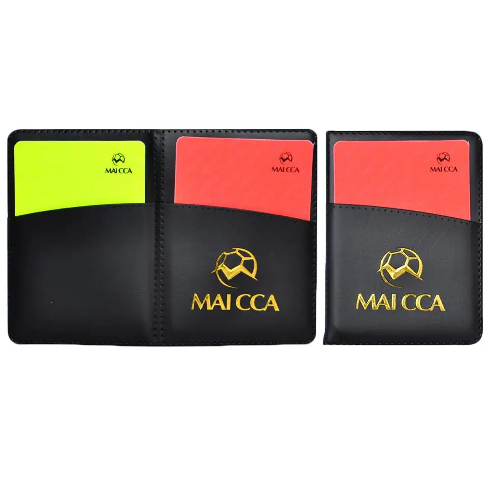 Футбольные красные и желтые карты записывают красные желтые карты рефери инструмент с кожаным чехлом и шариковой ручкой