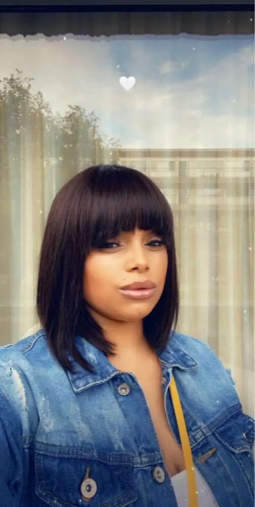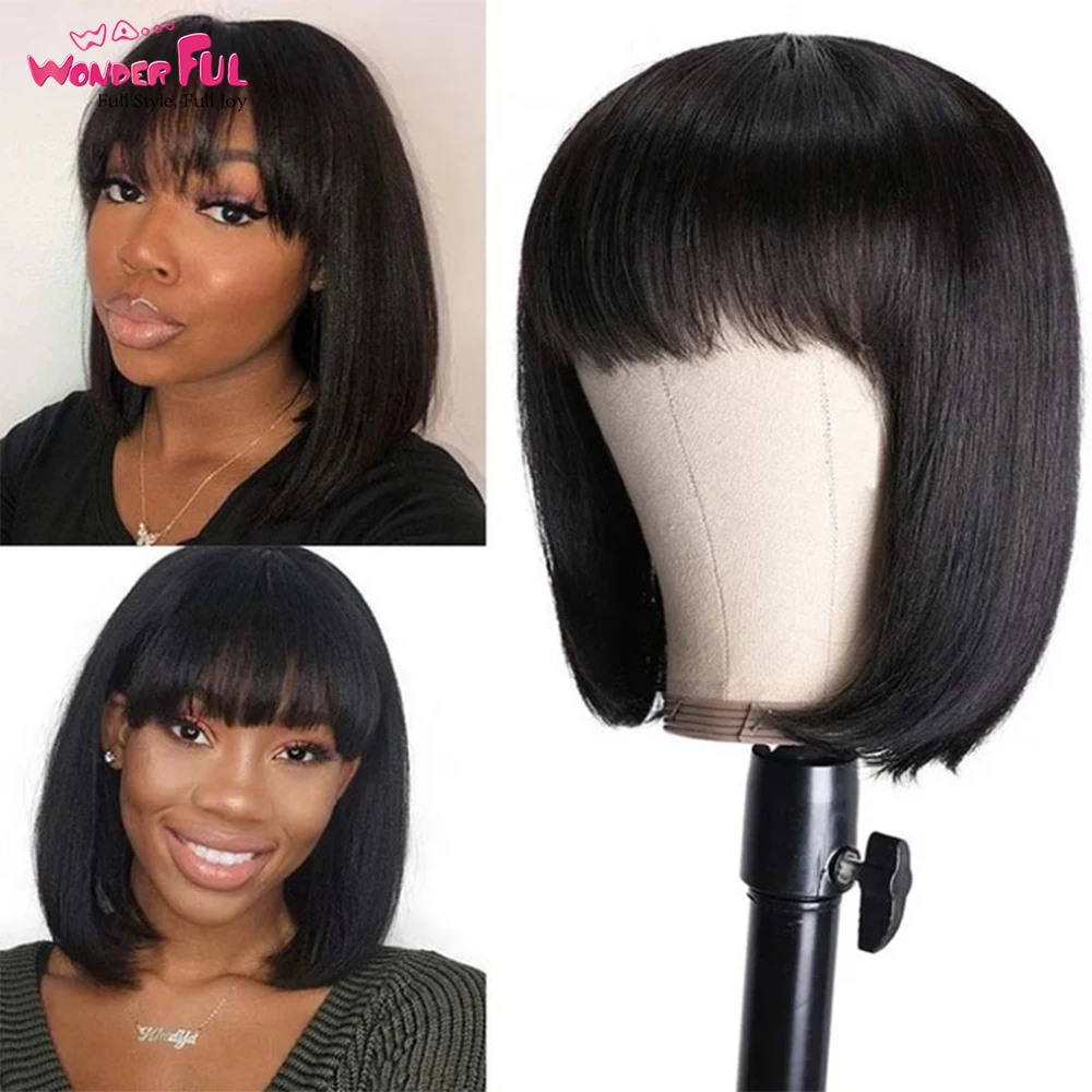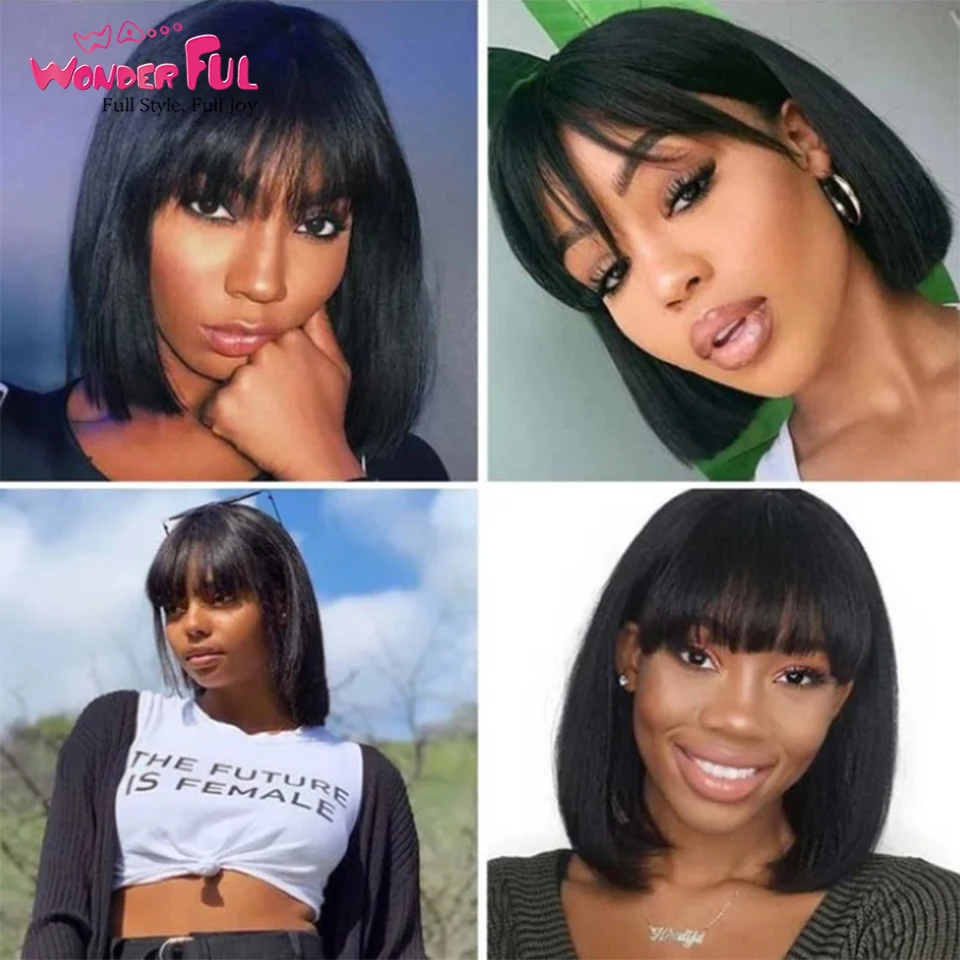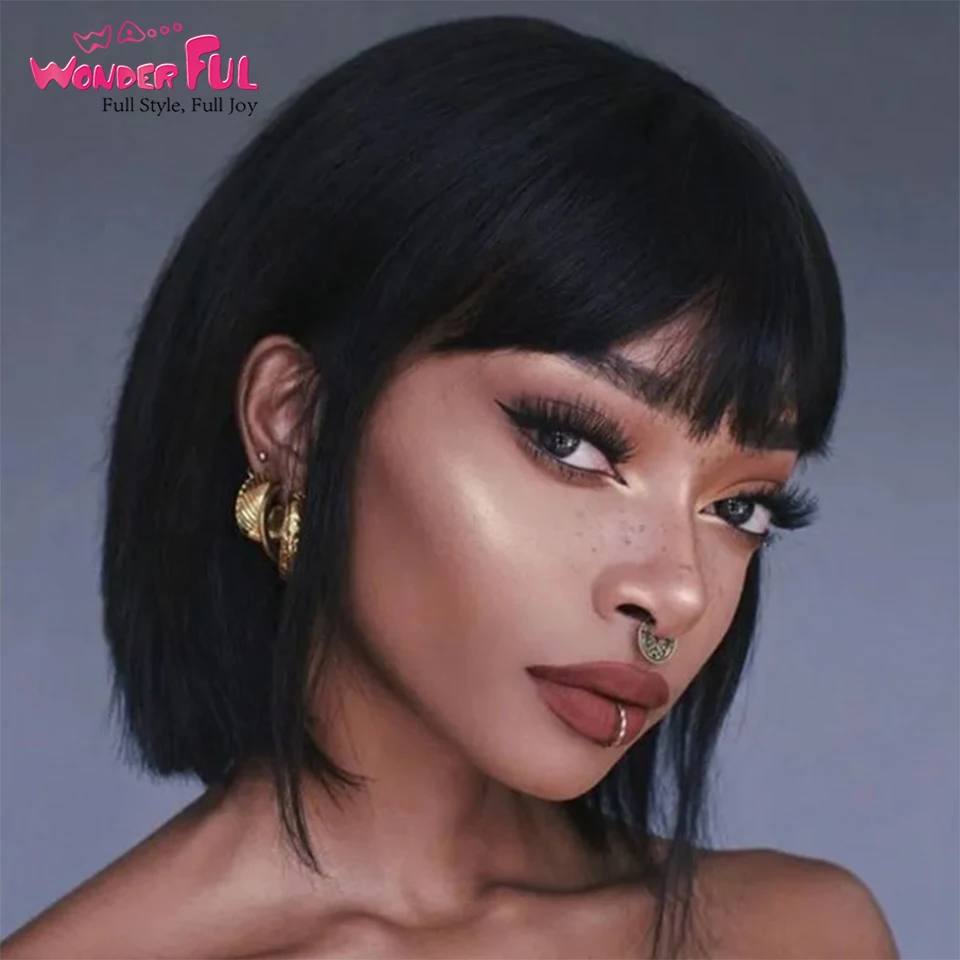 Парик короткий женский, с челкой, прямые бразильские волосы, без клея