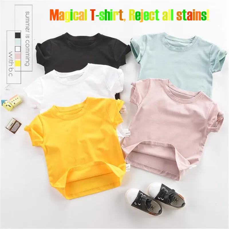 Детская водостойкая футболка, 5 уровней защиты от грязи, Быстросохнущий топ с защитой от пятен, для мальчиков и девочек, с коротким рукавом, футболка "Магия"