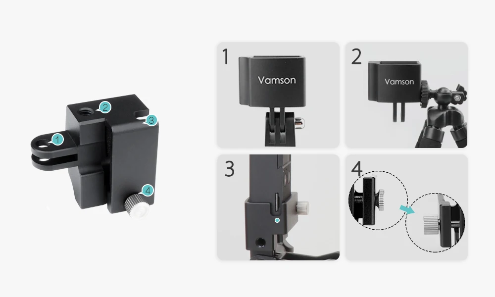 1. Пересекающиеся соединения 2,1/4 стороны резьбовое отверстие 3. Удобный слот для карт памяти для удаления 4. При кручении винтовая фиксация