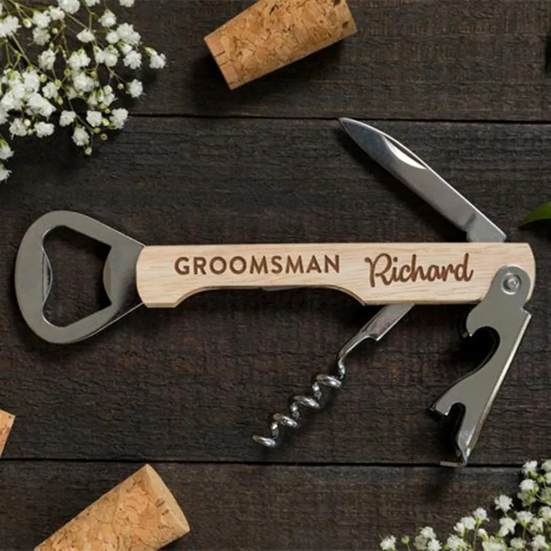 Пользовательские Свадебная открывалка для бутылок жениха подарок гравировкой открывалка для бутылок дружки подарок вечерние подарок персонализированный деревянные открывалка для бутылок