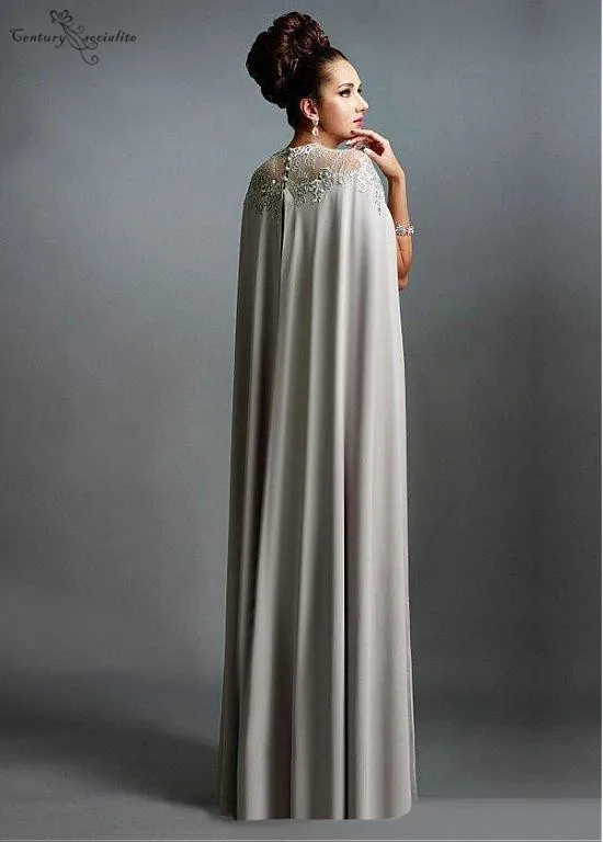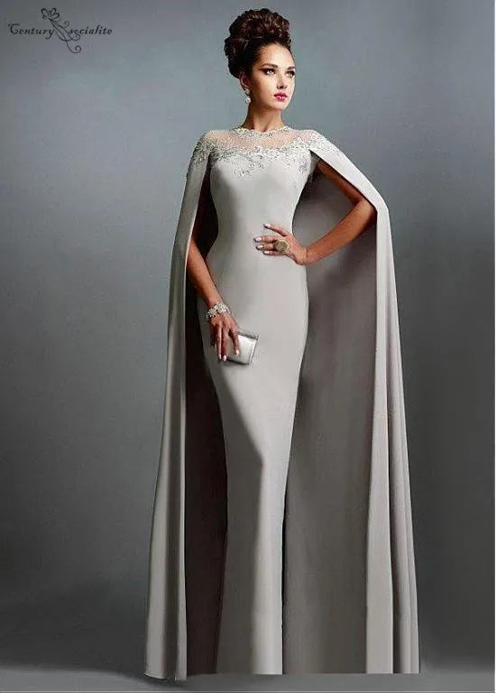 Женское длинное вечернее платье-русалка, серое платье с накидкой, кружевной аппликацией и бусинами, официальное платье для выпускного вечера, 2020