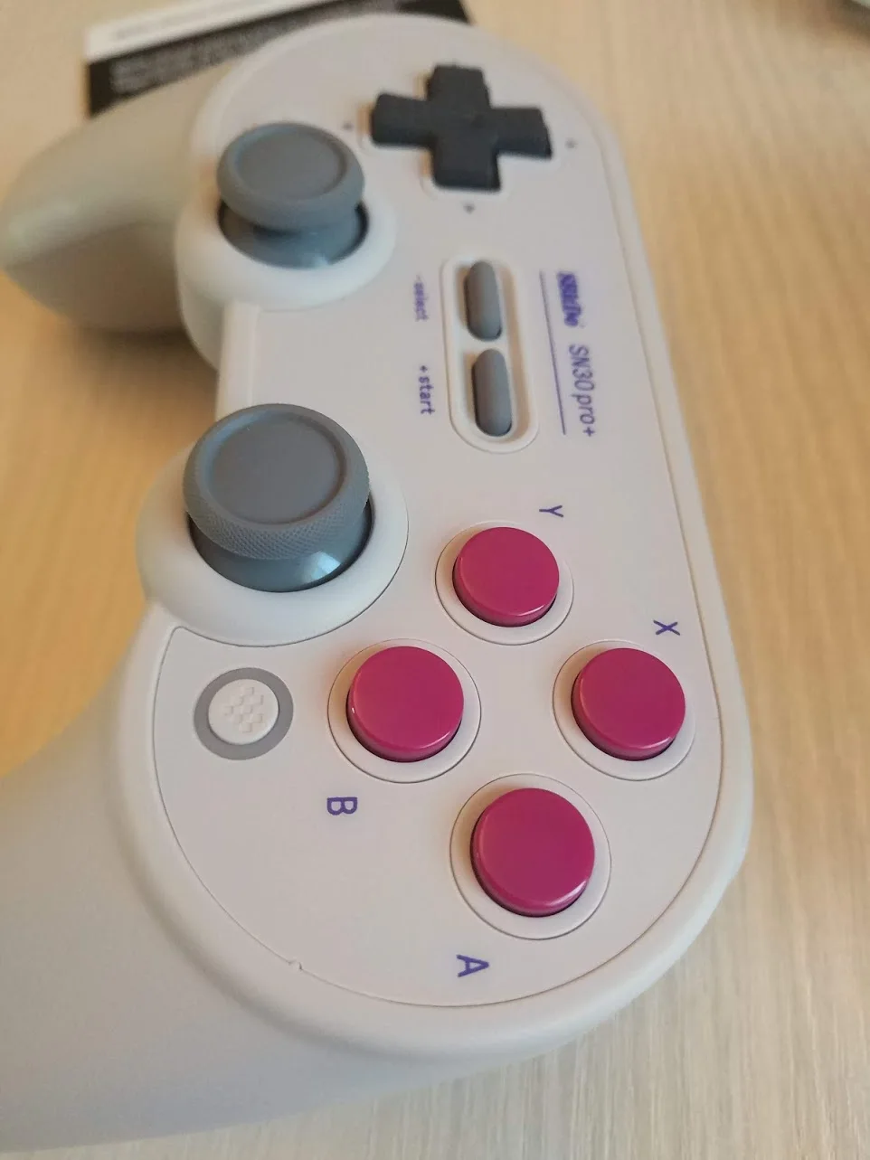 У этого контроллера, к моему сожалению, есть полноценные АНАЛОГОВЫЕ курки, в отличие от обычной модели SN30 Pro без плюса, так что если кто-то ожидает цифровых нинтендовских кликеров ZL-ZR – тут их нет. Но в целом контроллер максимально крутой и универсальный. Можно ремапить кнопочки и прописывать макросы прямо вовнутрь устройства. Кнопочки ABXY большие, твёрдо и громко щёлкающие. Разметка на контроллере нинтендовская, но режимы переключайте как хотите, так что можно иксбоксковским его сделать (Xinput) и даже ноунейм контроллером для мобилки (Dinput). Гироскоп на Свиче работает отлично.
