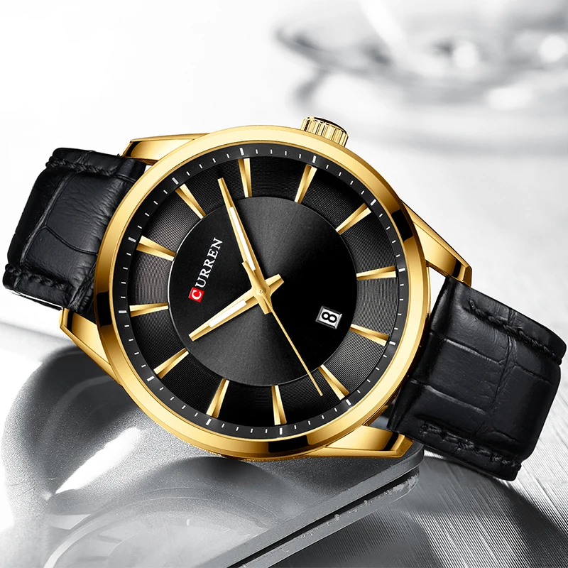 CURREN черные золотые модные повседневные кварцевые часы мужские ча...