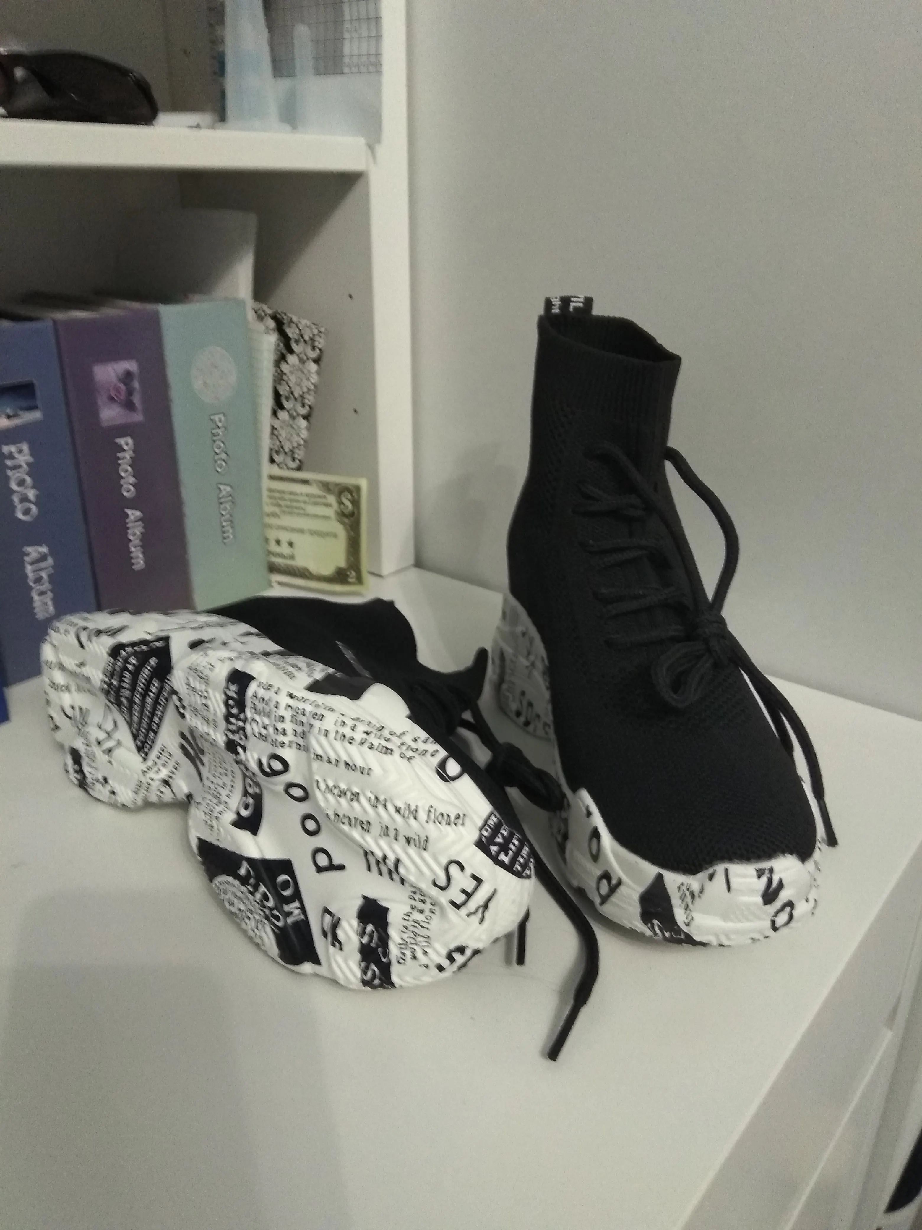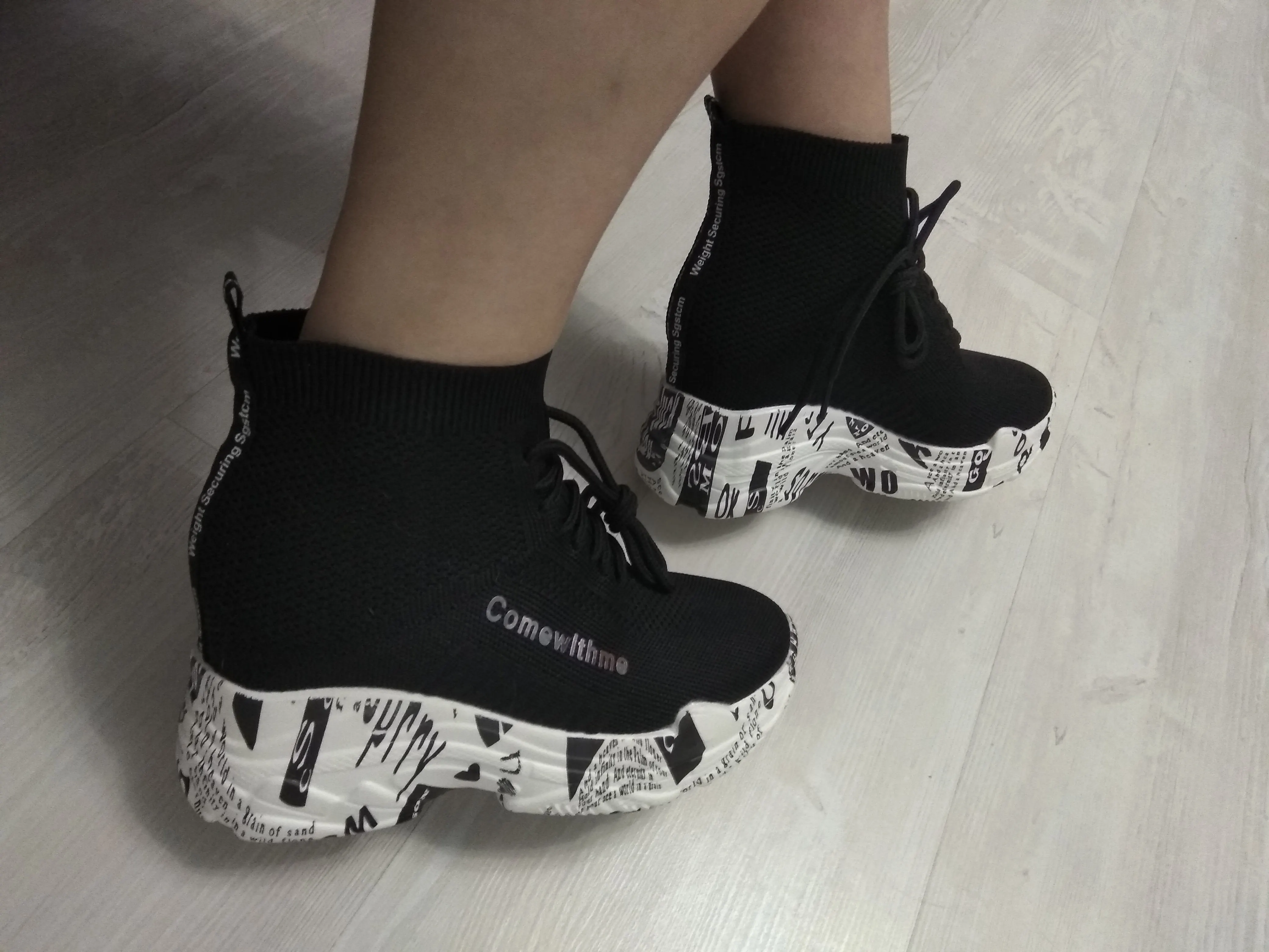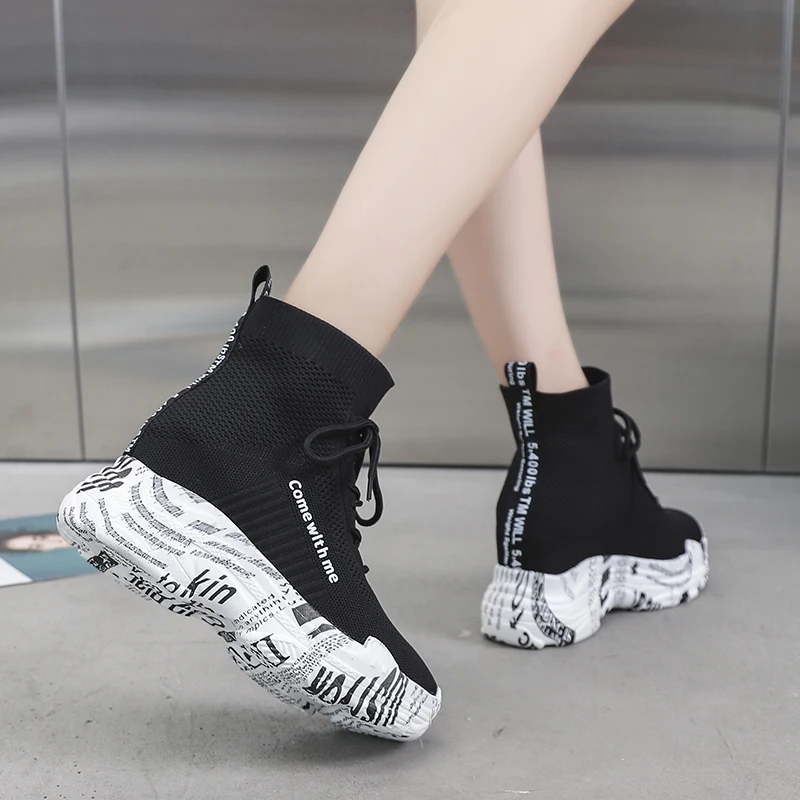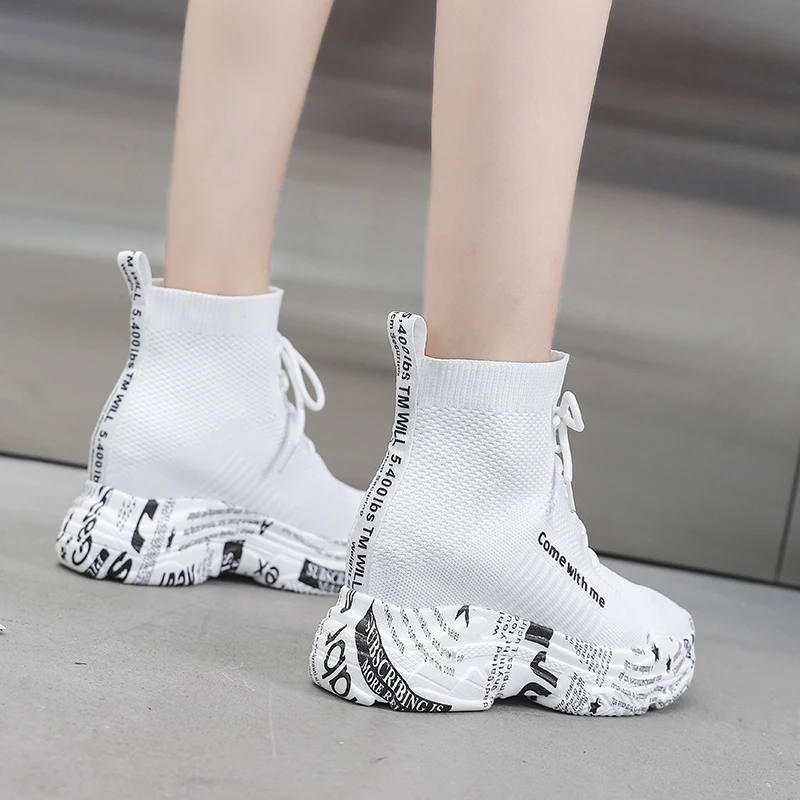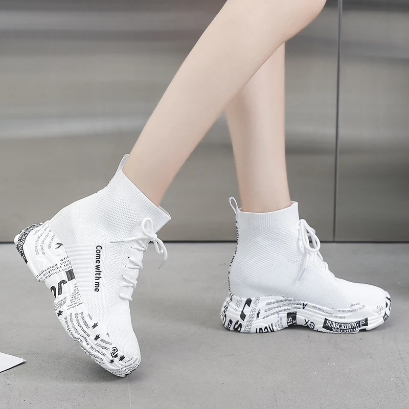 Ботильоны женские Lucyever, на высокой платформе, с надписью и граффити, вязаные, повседневные, без застежек