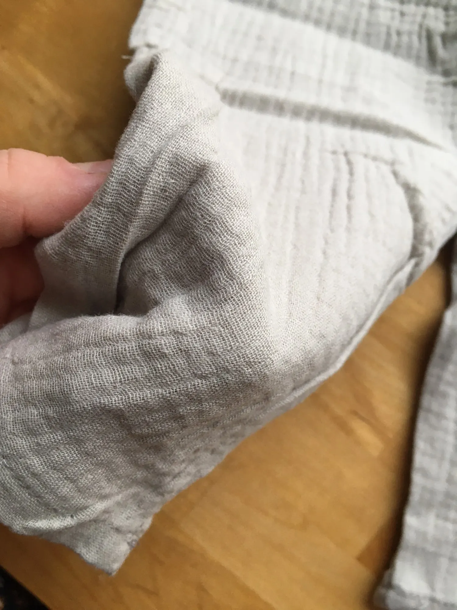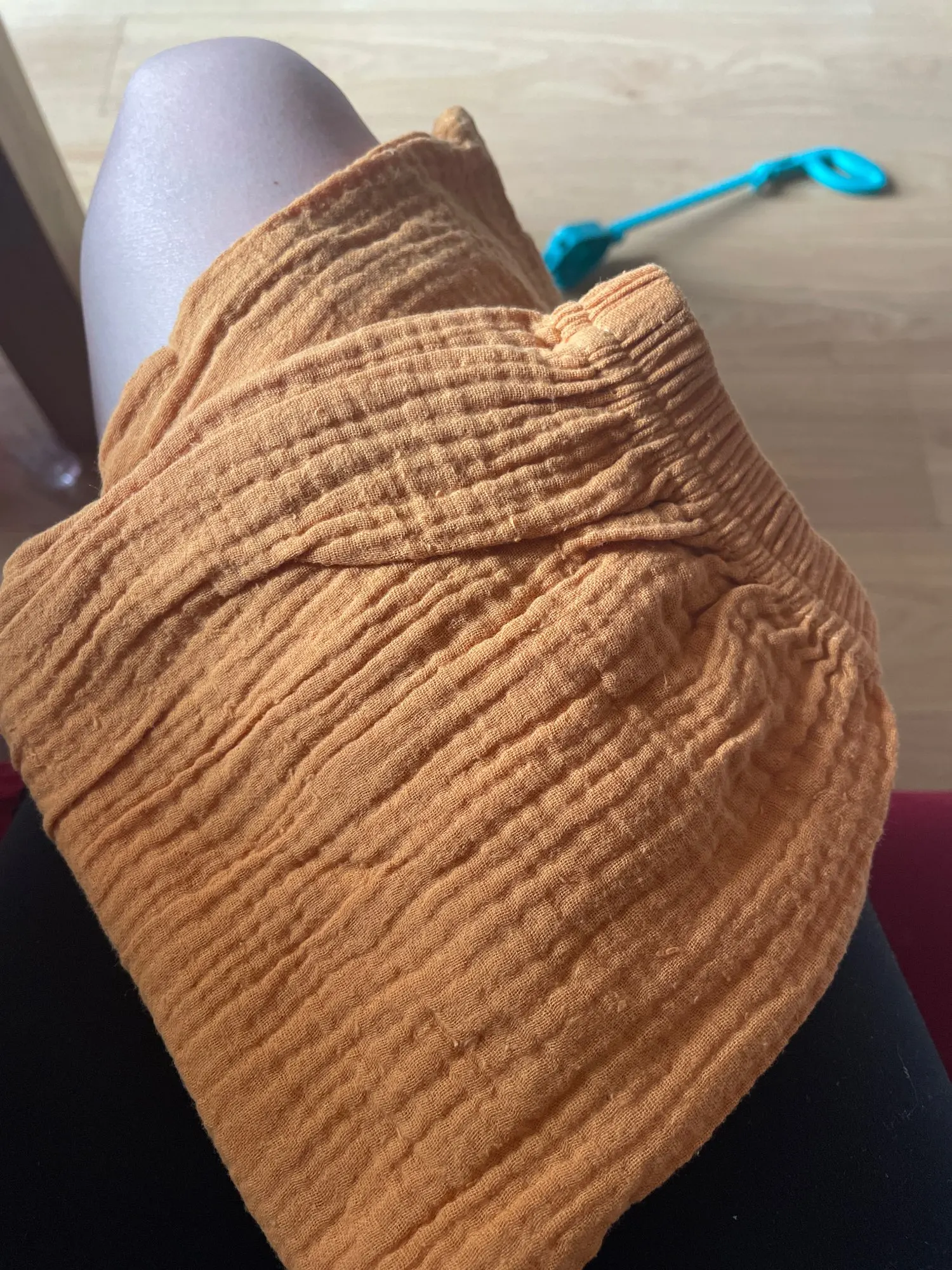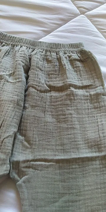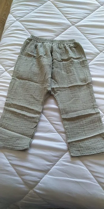 Ткань очень тонкая, в отличие от описания товара, она даже не близка к льняной ткани, может быть смешана из хлопка со стразом. Подол не прямой, и я думаю, что брюки не будут хорошо выглядеть после стирки. Однако по этой цене очень хорошие летние штаны для игры на песочнице.