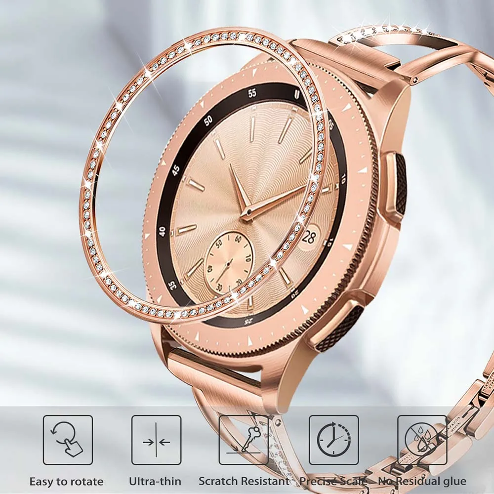 Кольцо из нержавеющей стали и бриллианта для Samsung Galaxy Watch, 42 мм, Женский металлический клейкий чехол из розового золота с защитой от царапин