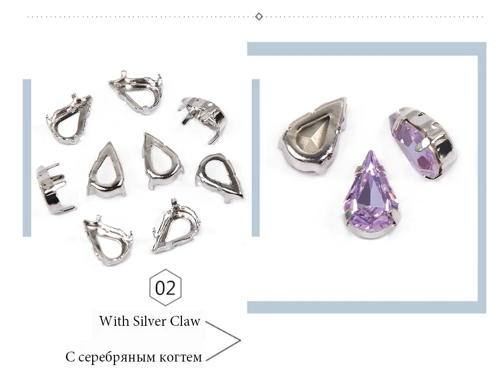 Прозрачные стразы CTPA3bI в форме груши, Пришивные стеклянные страз...