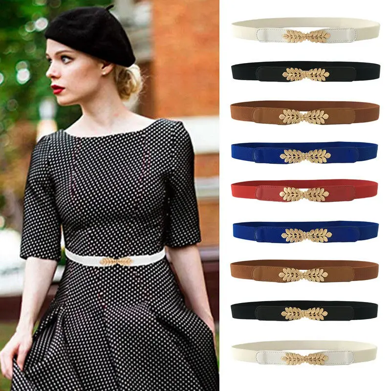 Женский эластичный ремень с бантом, тонкий эластичный пояс с пряжкой в виде листьев, 2019